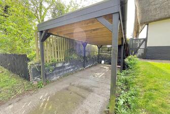 The driveway and car port to front, in total allows parking for roughly three vehicles. The side gate opens into the cottage garden, which is mainly lawn, covered timber pavilion and small wildlife pond with various shrubs. A secluded terrace with established grape vine covered pergola creates a great place for dining or relaxing with family.