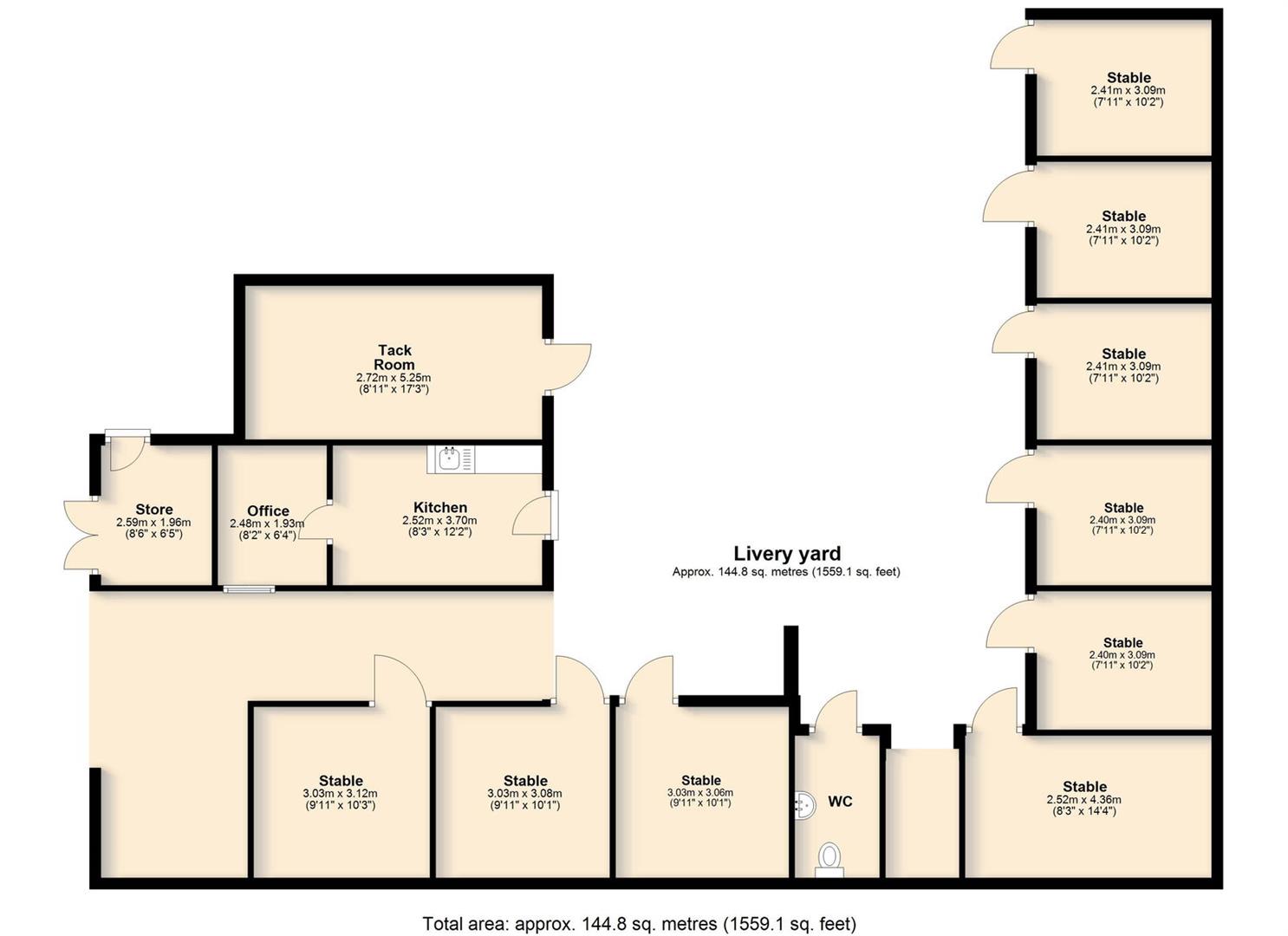 An exceptional equestrian facility offering a perfect blend of functionality and charm. This well-appointed property features open stabling for comfortable horse accommodation, a spacious hay store, and a versatile former shop/cafe, ideal for hosting events or providing refreshments. The dedicated schooling area ensures an optimal environment for training, while the expansive yard facilitates easy movement and care for your equine companions. With ample parking for several vehicles, this delightful riding school promises convenience and accessibility.