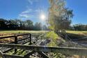 Nestled within a picturesque landscape, this expansive 17.8 ( approx.) -acre estate features, lush grasslands, and secure fenced paddocks, ideal for equestrian enthusiasts or livestock. This remarkable land offers endless possibilities for outdoor recreation, landscaping, or simply enjoying the serenity of nature. An exceptional opportunity for those seeking a rural haven with the perfect blend of open space and natural beauty. The property features a spacious driveway that accommodates several cars, ensuring ample parking for residents and guests. The immediate garden is bordered by attractive post and rail fencing, providing a charming entrance and offering stunning views over the paddocks.