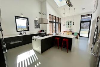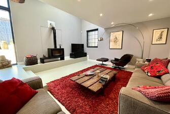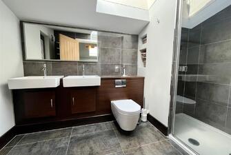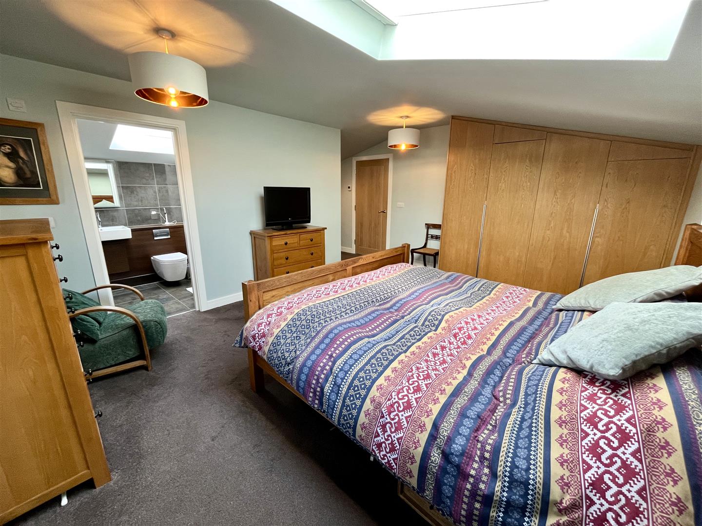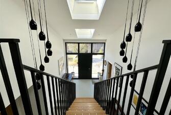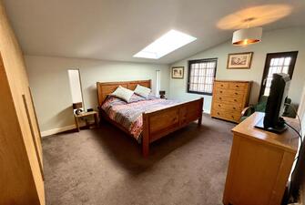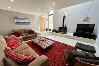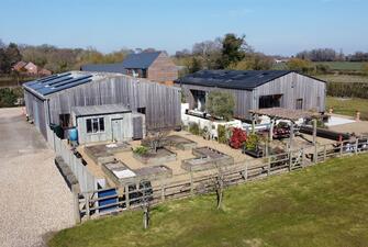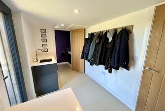 The main barn has been sympathetically and expertly transformed into a modern family home, with four bedrooms and three bathrooms all to a high quality finish. The heart of the home is the spacious open-plan kitchen/dining/sitting room with bi folding doors offering fabulous countryside views. As well as a cosy lounge with a wood burner for those winter evenings. With meticulous attention to detail, the home features high-end finishes throughout, including timber framing, UdiFlex wood fibre insulation, triple-glazed windows, resin poured over insulated concrete flooring and an innovative ground source heating system providing efficient underfloor heating. The home is further enhanced by luxurious touches such as automatic roof lights and a bespoke secondary flat roofing system and internal gutters, black corrugated cement board roof and Red cedar cladding.