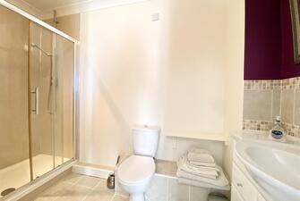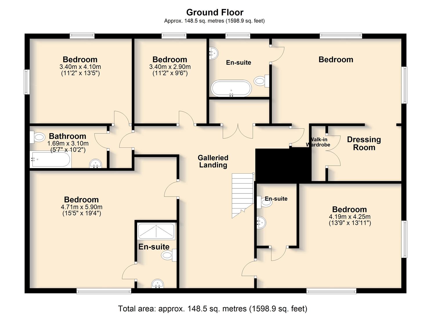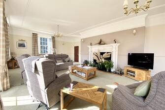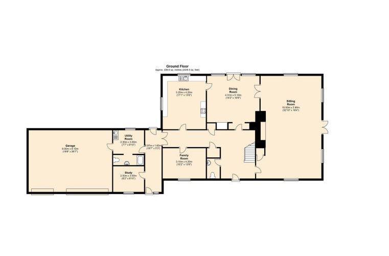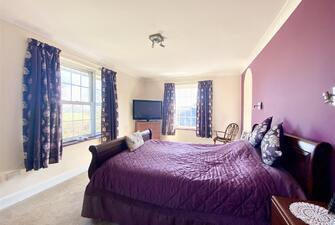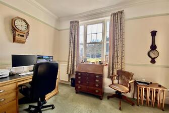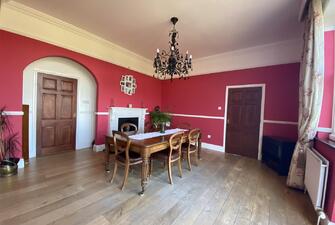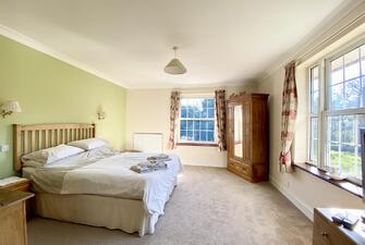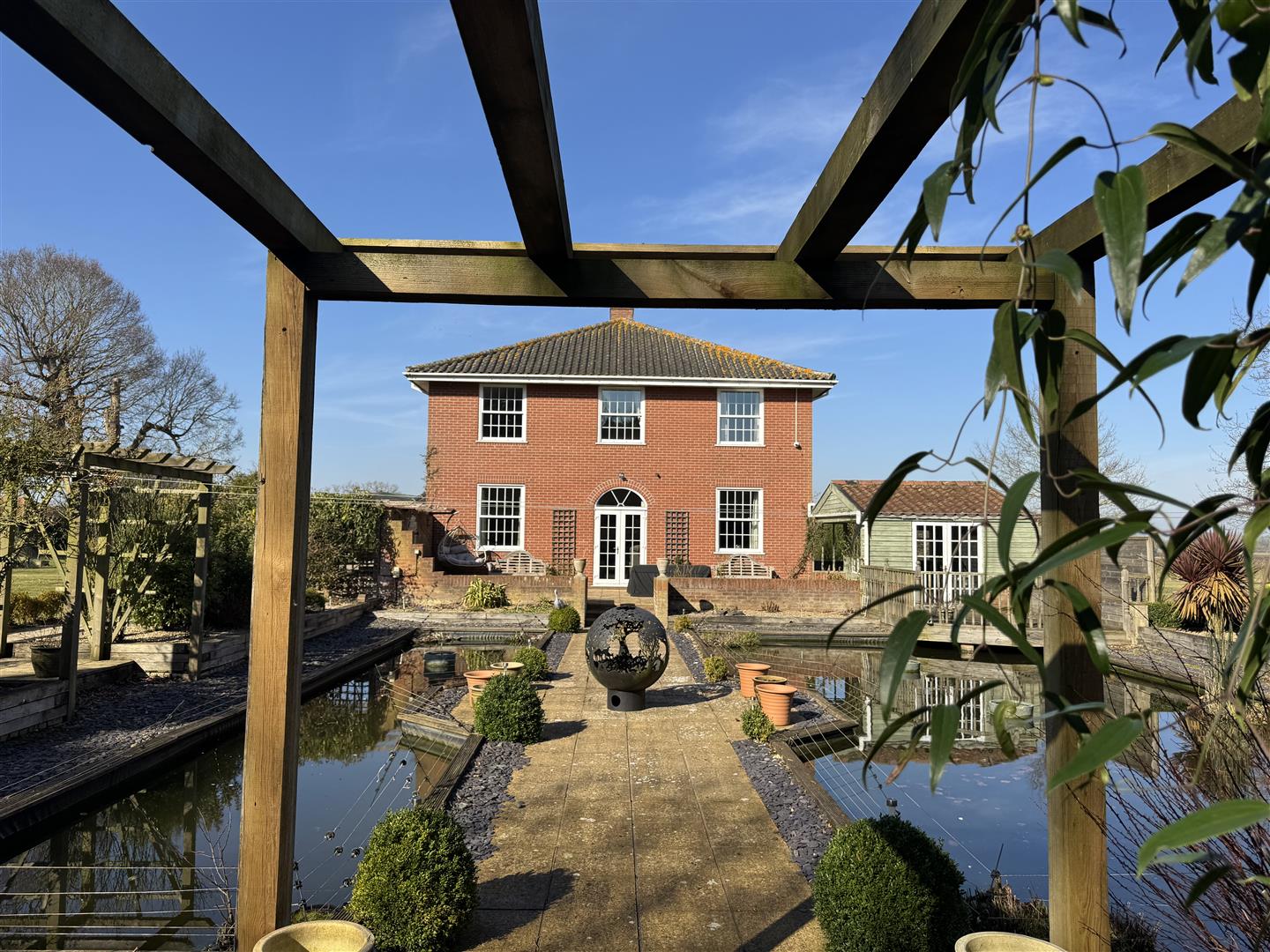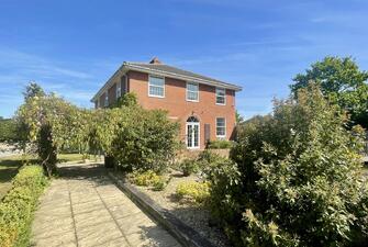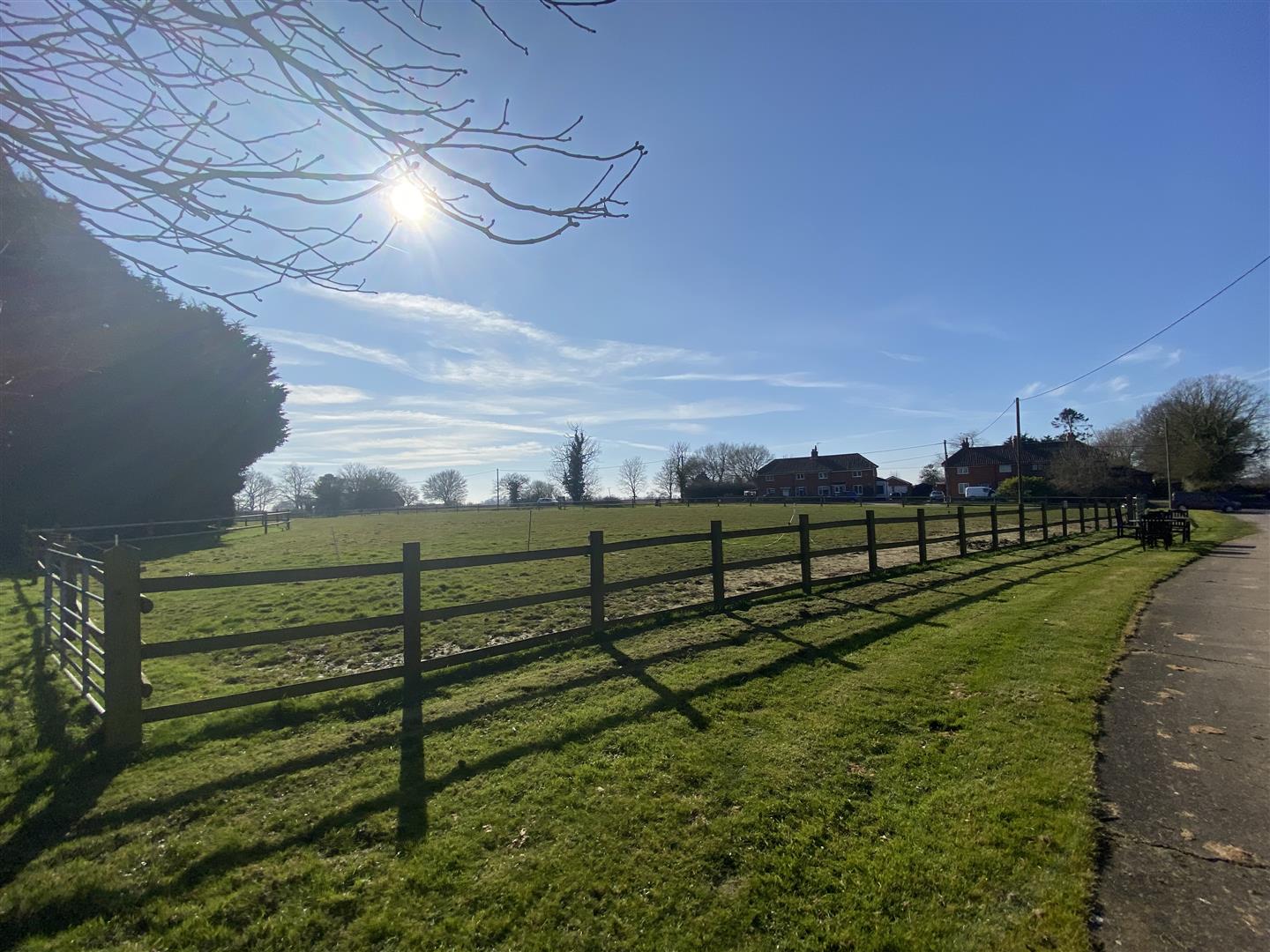 This stylish and spacious five-bedroom farmhouse built in a Georgian style with double glazed sash windows offers well-balanced accommodation across two floors. High ceilings, decorative cornicing, and period-style picture rails enhance the sense of character and space throughout the ground floor. The south-facing sitting room is bright and airy, featuring a wood burner and double doors opening onto a sunny south facing patio and a private garden. The dining room, accessible through panelled doors from the sitting room, has a fireplace and further doors leading to the rear garden. The kitchen, complete with a range cooker with an induction hob and sociable central island, sits next to the spacious dining room, while a separate family room offers additional living space. A side hallway from the main entrance leads to a study, utility room, and shower room. Upstairs, four of the five bedrooms have en-suite facilities, with the master bedroom also benefiting from a spacious dressing room.
