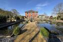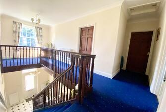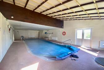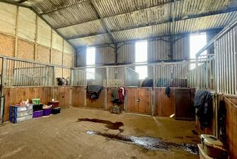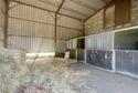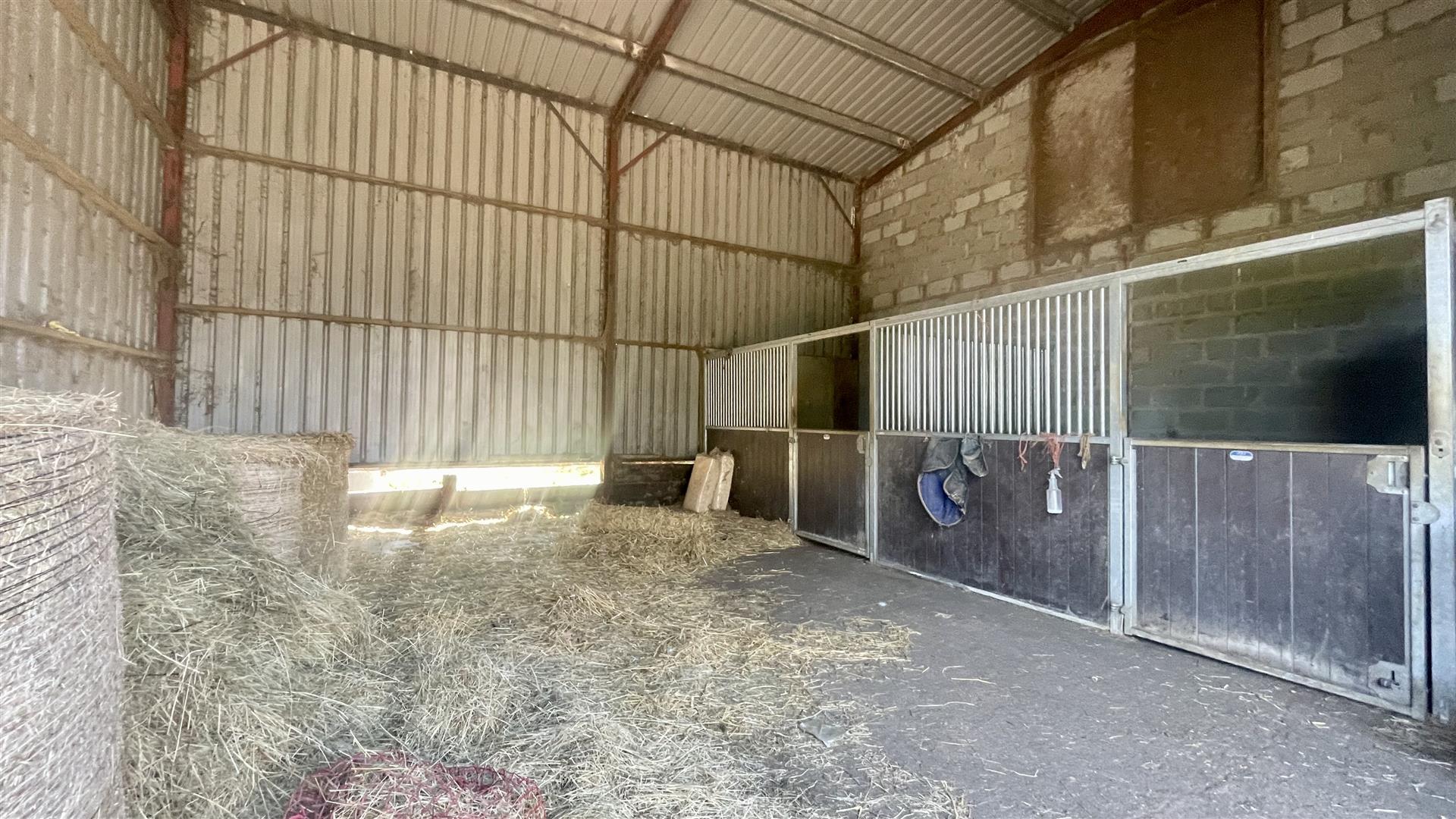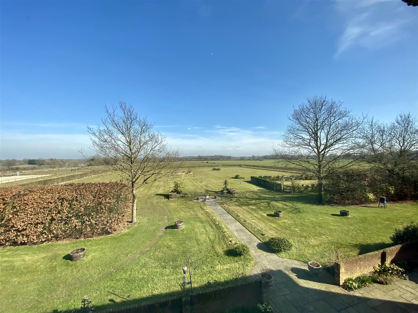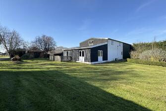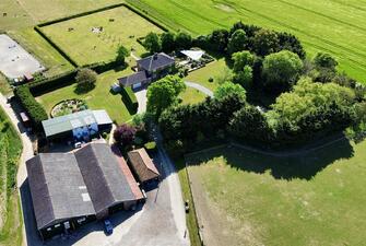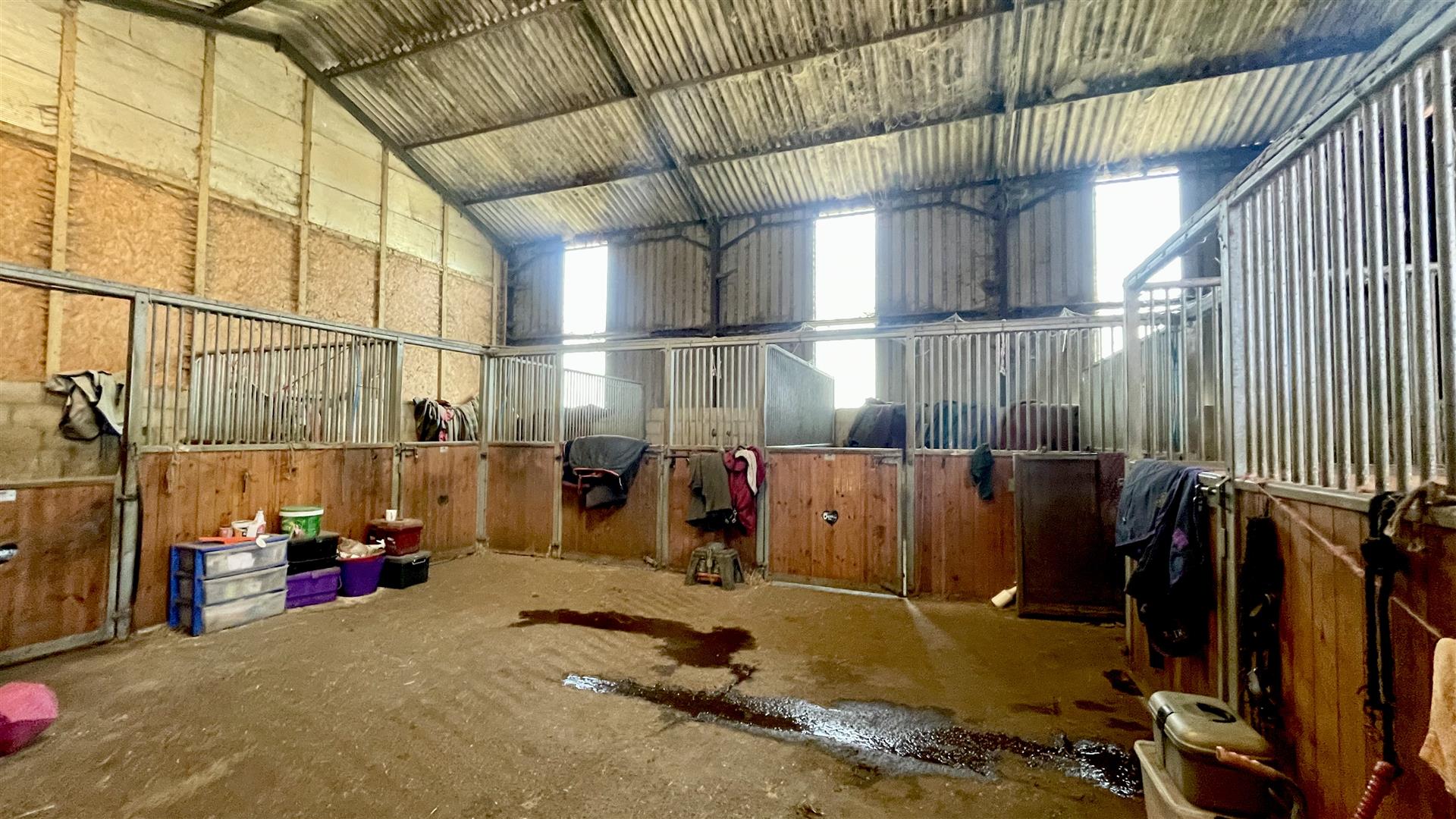 A private driveway leads to the farmhouse, passing a front paddock on one side and a collection of farm buildings, The driveway circles around a lawn with a mature oak tree at its centre. The gardens surrounding the house are mainly laid to lawn, with a variety of mature trees adding to the charm. A sunny sunken patio area bordered by a low wall leads down to well stocked decorative fish ponds, sits on the south side of the property, complemented by a useful summer house. To the north of the house, a detached building houses a swimming pool, with an additional room above. A substantial farm building, covering approximately 7,500 sq. ft., provides ample storage space and includes ten stable boxes with lighting and a water supply. The grounds, which extend to around 13 acres (subject to survey), include paddocks and an all-weather ménage within a main paddock area of about 7.9 acres, enclosed by post-and-rail fencing.