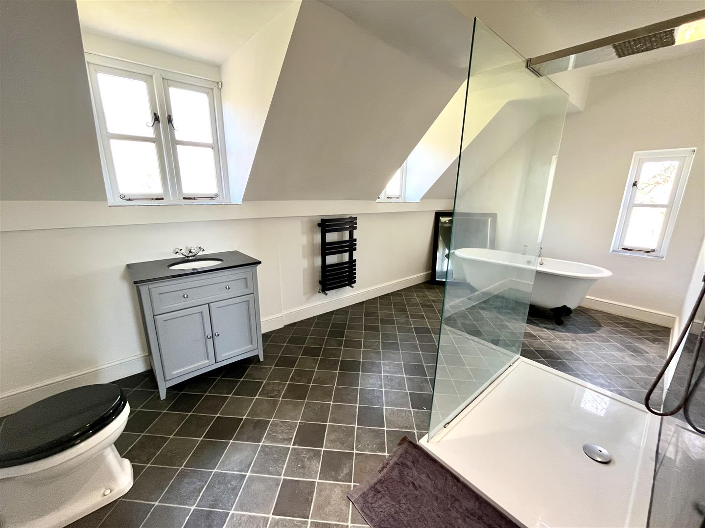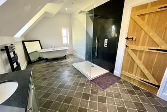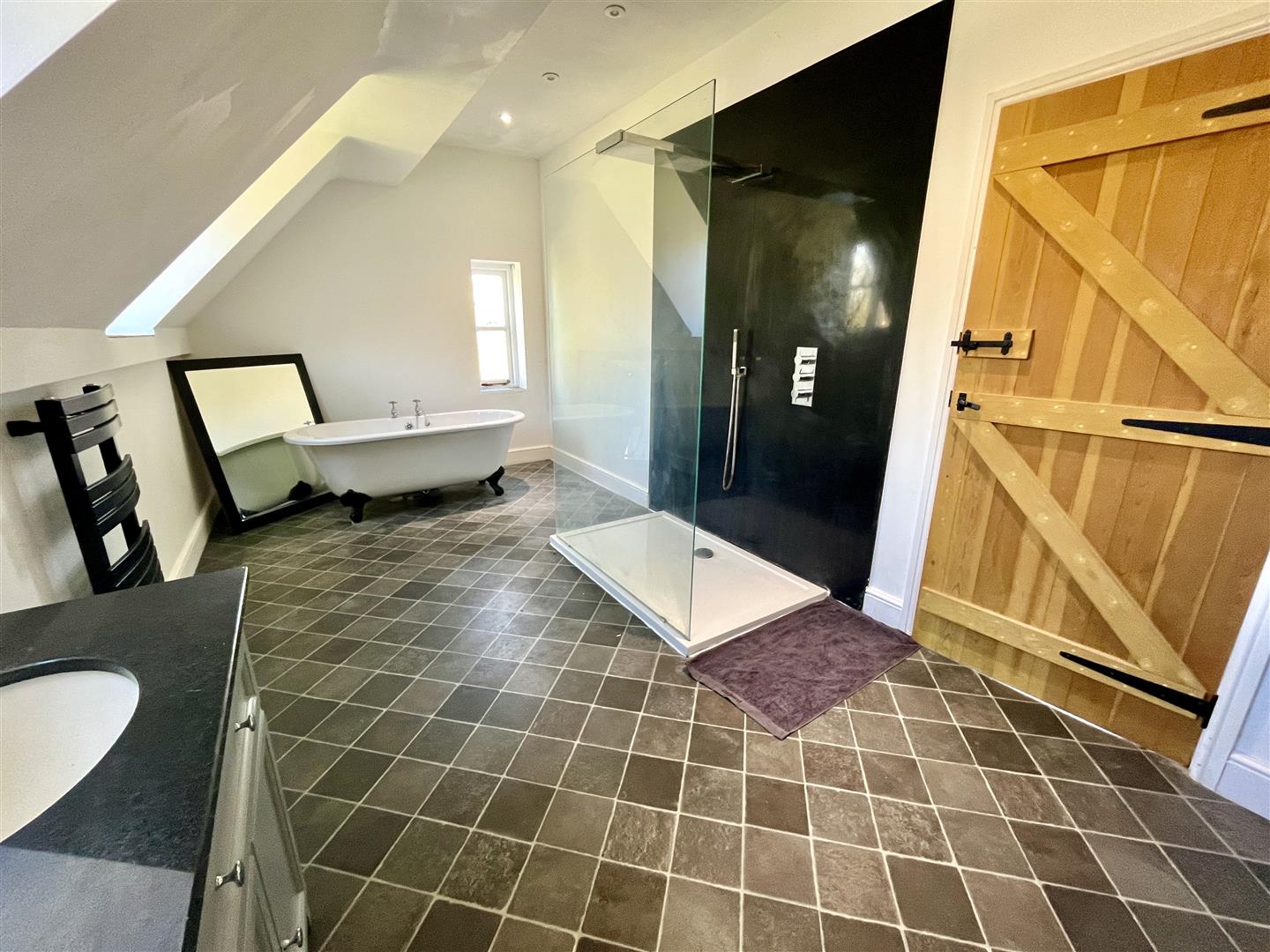 This Spacious Five-Bedroom Semi-Detached Home with Annex Potential – Ideal for Growing or Multi-Generational Families. With versatile and generously proportioned five-bedroom semi-detached home offers a unique blend of character and modern living, making it perfect for large families or multi-generational living. Upon entering the property, you are welcomed by a spacious entrance hall that flows into multiple reception areas, including a cosy snug, a formal dining room, and a well-appointed kitchen. A ground floor shower room adds convenience for family and guests alike. The formal lounge, featuring a charming wood burner, leads into the beautifully designed modern extension – formerly an annex – that significantly enhances the home’s flexibility. This area includes an additional lounge/kitchen with sleek bi-folding doors opening onto the garden, a separate dining area, a reception room, and an impressive main bedroom boasting exposed beams, a vaulted ceiling, and its own wood burner – a perfect private retreat or independent living space. Upstairs, a spacious landing provides access to four well-sized bedrooms and an executive family bathroom. The bathroom suite is a true luxury, featuring a freestanding roll-top bath and an oversized double shower with an overhead rainwater effect showerhead.