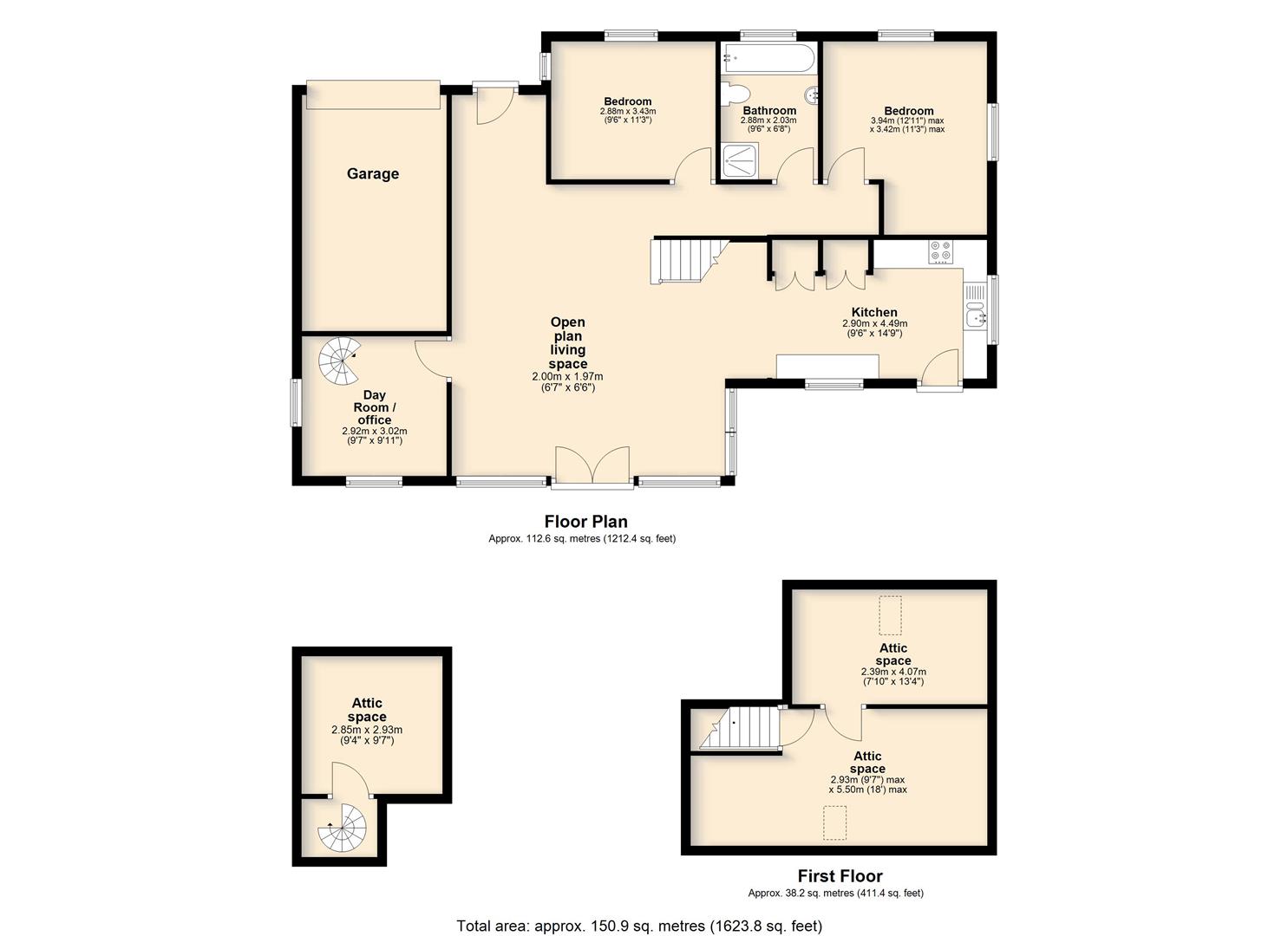 A straight staircase also leads up to two further Attic spaces, both of which have skylights and potential for multiple uses.