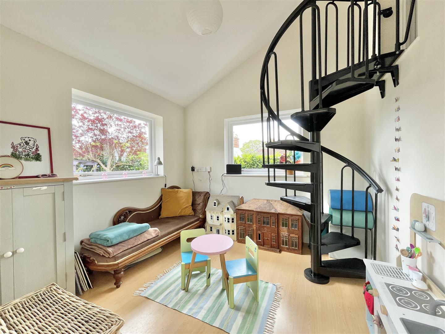 From the moment you step inside this unique property, there is a feeling its special place to be and it certainly holds a 'wow' factor. The living room is bright, with large degree of glazing, which extends to part of the roof, along with french doors which bridge the ambient sense of 'house meets gardens'. This beautiful social area of the property incorporates generous living and dining space, and was specifically designed by the owner to create a real hub for family and friends to meet up and enjoy. The space flows through to a fitted kitchen, with various fitted units and plumbing connections, with further door which provides access to the patio area. The Hallway leads to two double bedrooms, which are neutrally decorated, along with a bathroom with a separate shower cubicle. A useful Day Room/office is also found just off the main living area and features a spiral staircase leading up a storage/converted Attic space.