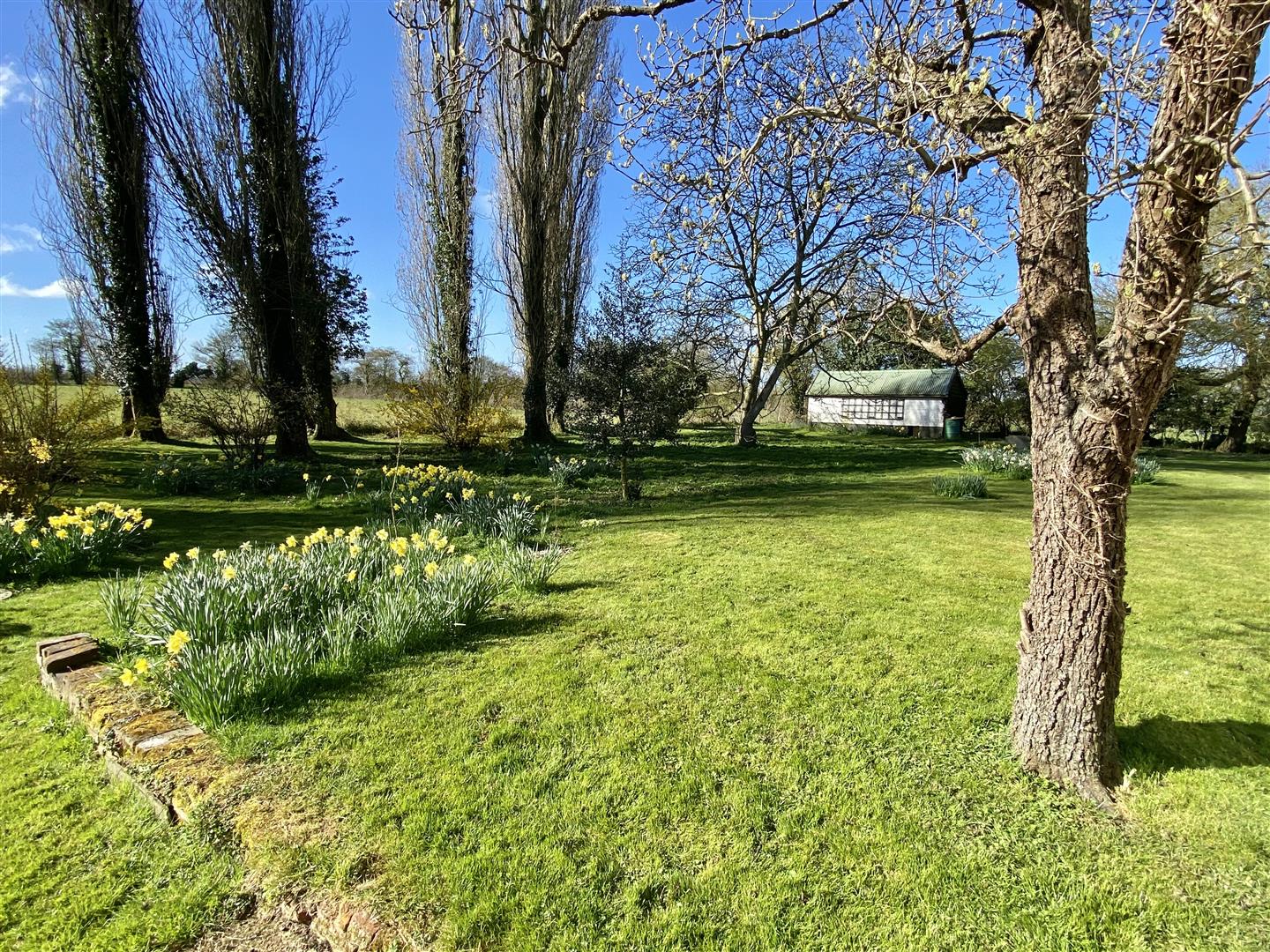 Set in just over an acre of attractive garden with various trees and areas of lawn under sown with spring bulbs, the garden wraps around the house giving sunny and shady areas whenever needed. There is a range of useful outbuildings providing garaging and storage space.