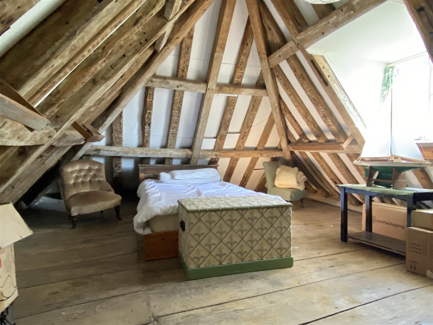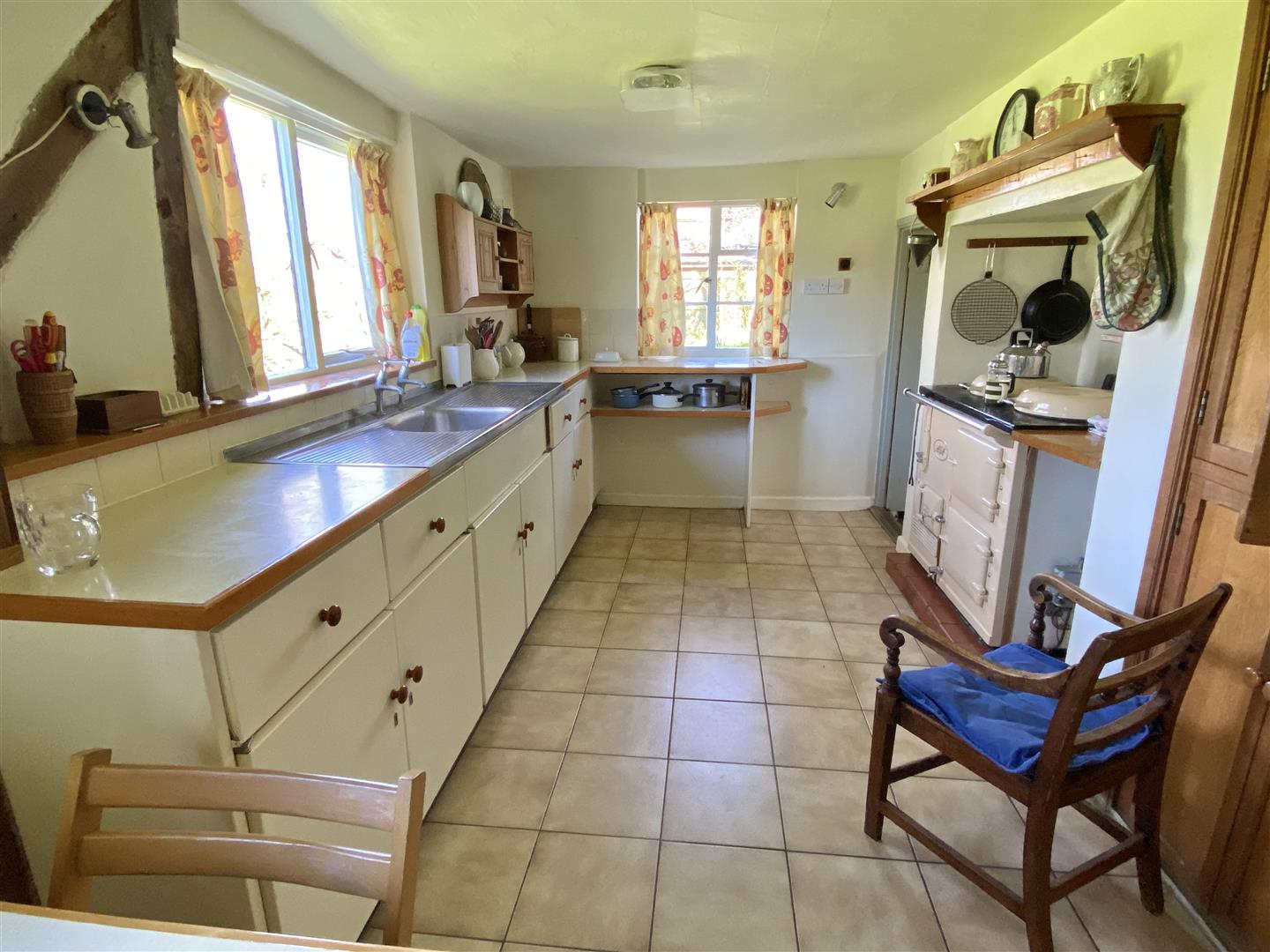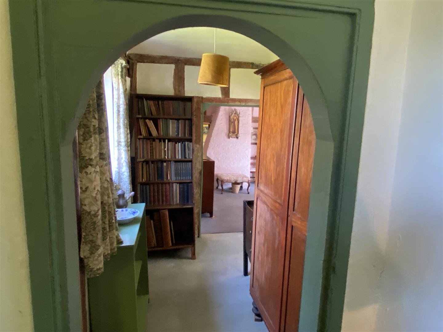 Walnut Farm is a very attractive house with its rendered exterior and steeply pitched plain tiled roof hiding a very finely timbered house within. Much of the timber frame is exposed and it is easy to understand why the house is Listed as Grade II with its impressive fireplaces, some with Georgian inserts, original period doors, and wide board floors of oak or possible elm. There is some improvement work that could be done which would allow a new owner to make their own mark on this house and it is one that many would describe as having been largely untouched which is a positive statement!