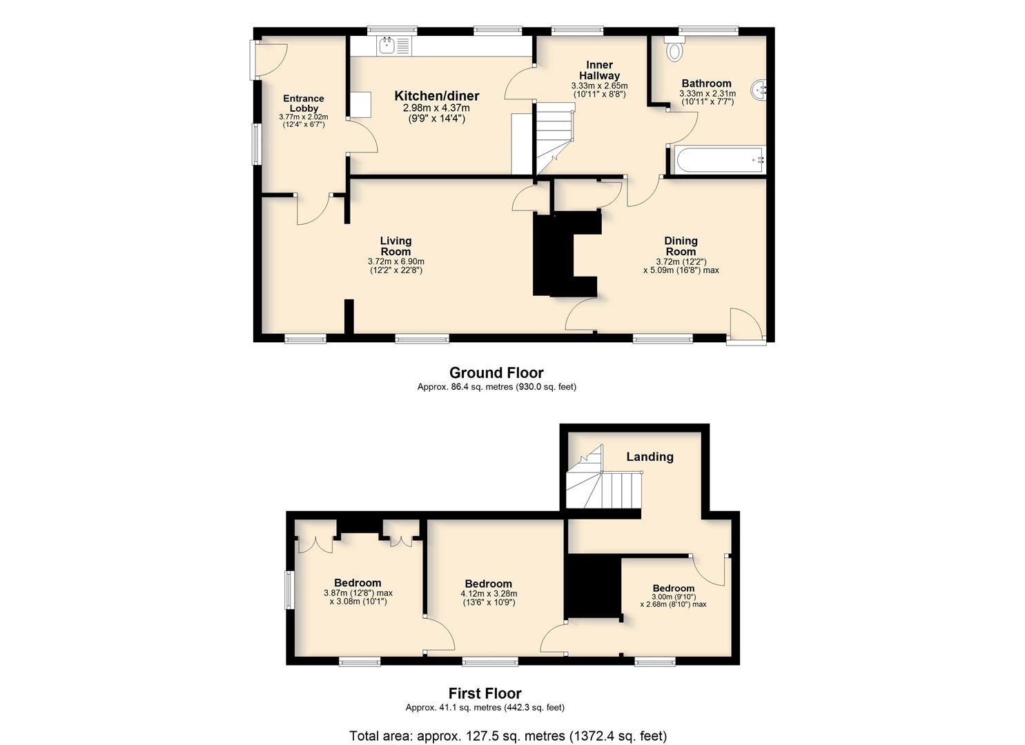 Small flying freehold above the dining room. There is a concealed shallow cellar within the inner hallway.