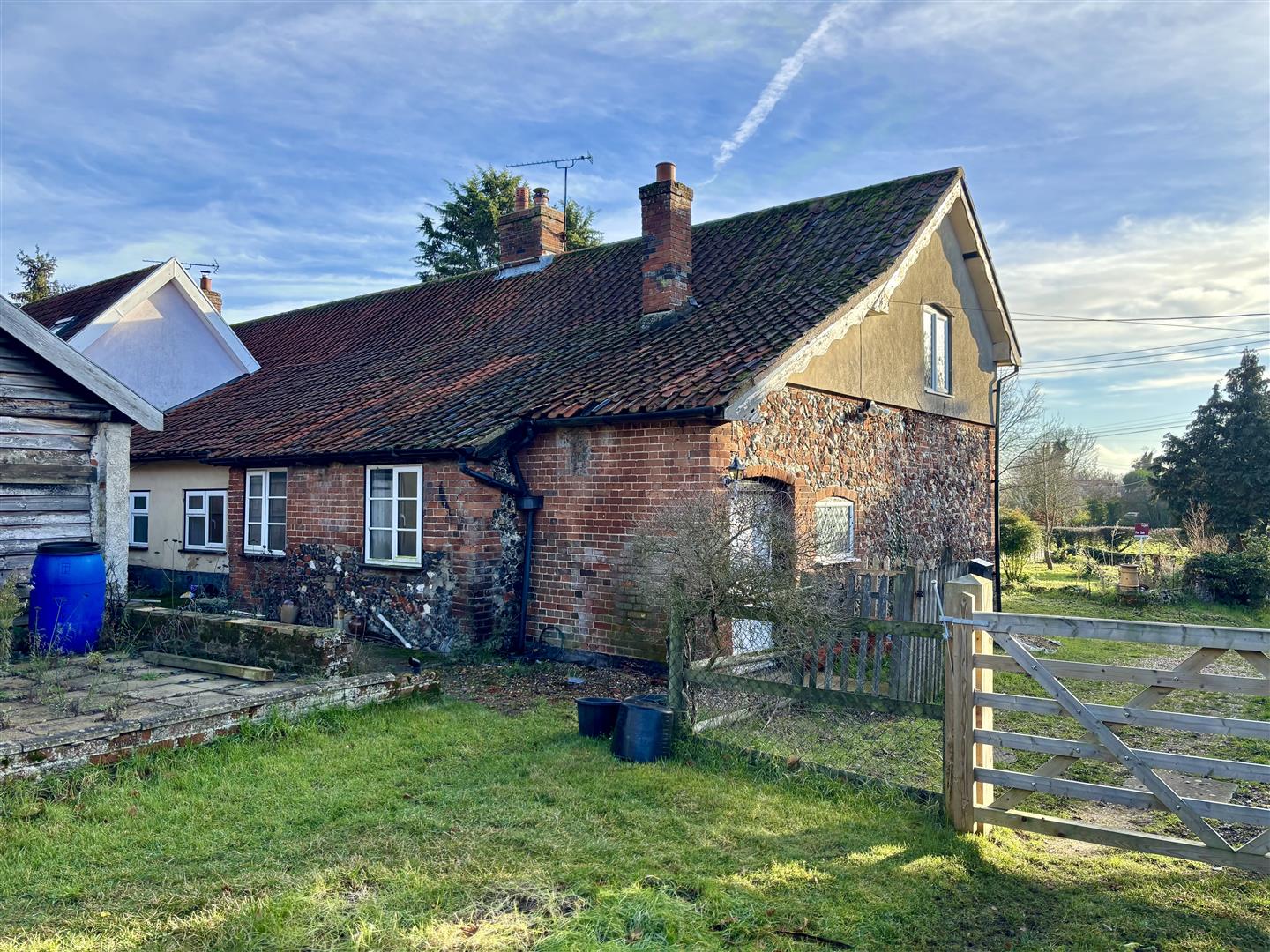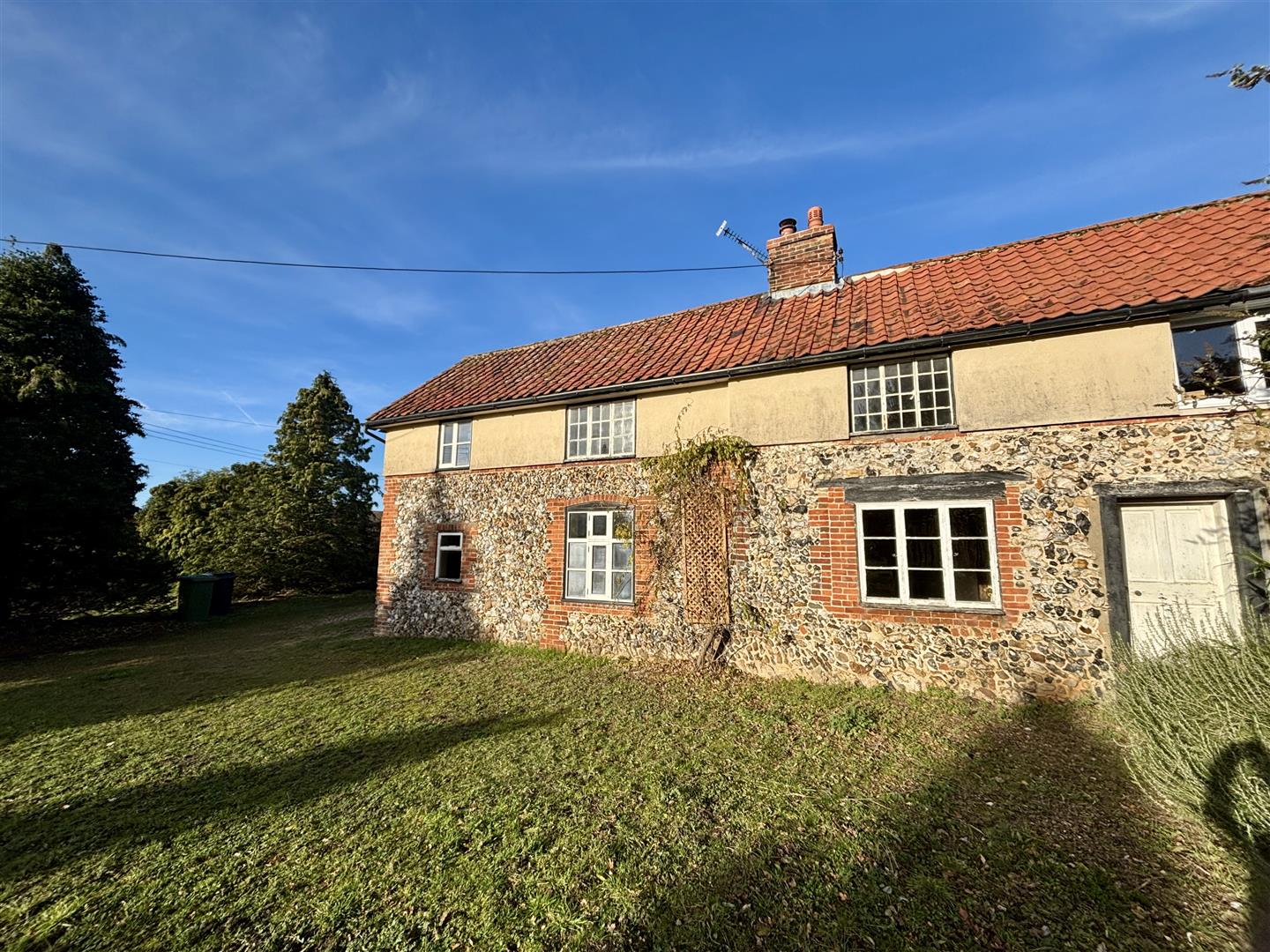 Brick and flint cottage set back in a slightly elevated position, requiring full refurbishment. The property has retained much of its character, such as Inglenook fireplaces and exposed feature timbers, with the cottage presenting a great opportunity to transform back into a wonderful country home.
