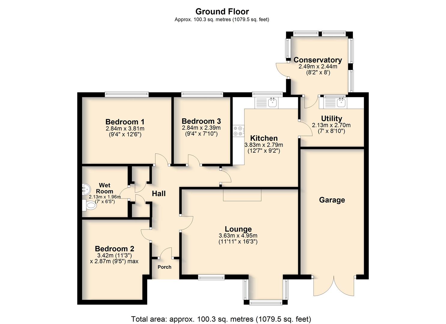 A Charming Detached Bungalow in a Peaceful Cul-De-Sac. This well-presented detached bungalow, located in a quiet and sought-after cul-de-sac, offers a perfect blend of comfort and practicality. The property boasts a welcoming entrance hall leading to a spacious lounge, featuring a traditional open fireplace, ideal for relaxing evenings. There are three generous-sized bedrooms, providing ample space for family or guests, complemented by a modern wet room. The kitchen is well-equipped and benefits from an adjoining separate utility room for added convenience. To the rear, a delightful conservatory overlooks the beautifully landscaped garden, creating a tranquil retreat. This home offers a wonderful opportunity for those seeking peaceful living in a prime location.