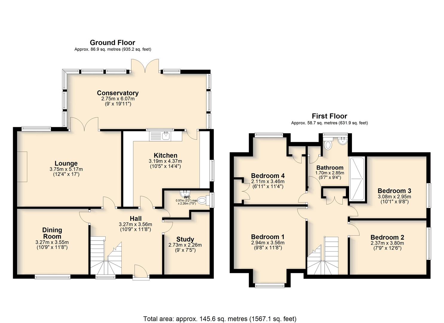This impressive Four-Bedroom Detached Home set on approximately 0.65 acres of beautifully maintained grounds, the property offers a unique opportunity to acquire a spacious and well-loved family home. Lovingly cared for by the current owners, the property seamlessly blends comfort, functionality, and charm. The ground floor features a dedicated study perfect for remote work or a home office, alongside a well-appointed kitchen/breakfast room and a formal dining room, ideal for entertaining. The generous lounge, complete with a wood-burning stove, creates a cosy and relaxing atmosphere for winter evenings. A bright conservatory provides the perfect spot to enjoy stunning views of the garden. Upstairs, you will find four well-proportioned bedrooms and a modern family bathroom. Additional storage space is available in the fully boarded loft. This property offers a rare blend of privacy, space, and warmth, perfect for those looking to enjoy country-style living with modern comforts.