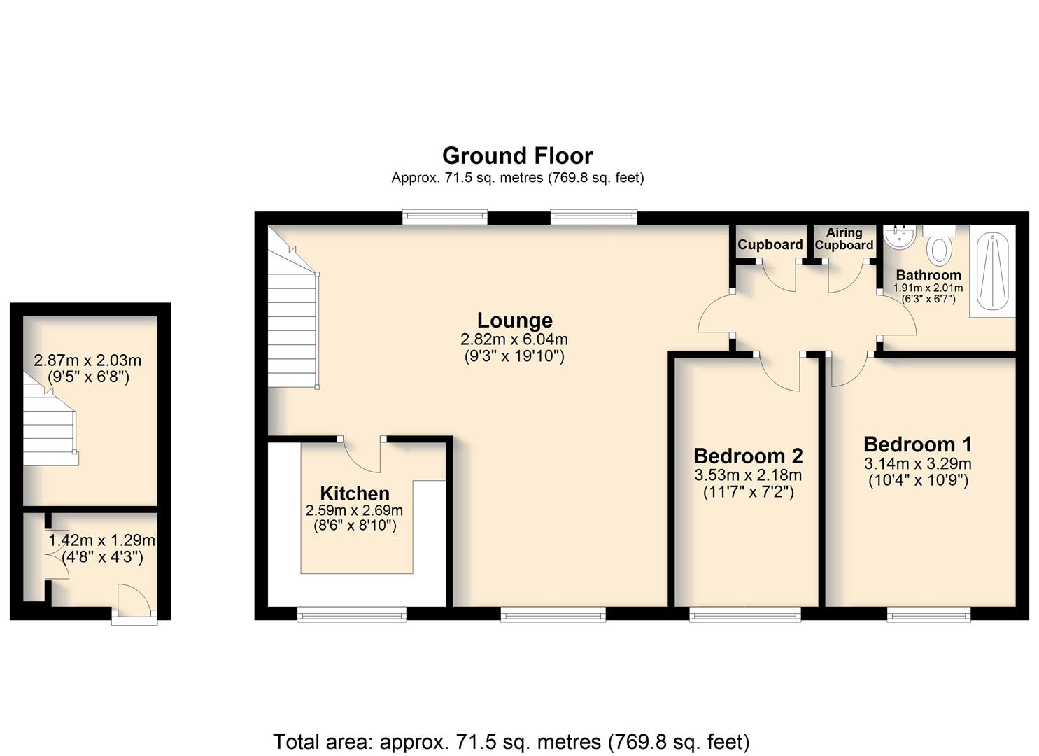 This attractive semi-detached coach house benefits from its own private entrance. Upon entry, you’ll find a useful cloaks cupboard and a ground floor storage area, offering practical space for everyday needs. Upstairs, the first floor opens into a spacious open-plan lounge and dining area, ideal for modern living. The fitted kitchen includes a brand-new oven and hob, making it ready to move straight in. The property also features two well-proportioned bedrooms and a modern bathroom, completing this stylish and low-maintenance home. Perfect for first-time buyers or investors alike, this property combines convenience and comfort,
