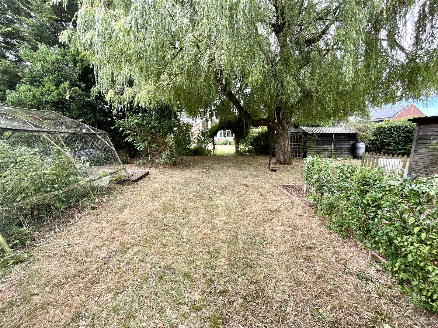 To the front of the property, mature trees and a large lawn create an attractive and welcoming approach. A stone driveway leads to a double garage, and a secure side gate provides access for a sit-on lawn mower. At the rear, a spacious patio area offers the perfect setting for alfresco dining, with room for a hot tub and several well-appointed seating areas that overlook the picturesque, well-maintained flower and shrub gardens. A stunning weeping willow provides natural shade, making it easy to escape the sun on warmer days. The garden also features a dedicated fruit cage area and a fenced dog garden. At the very rear, a further usable section of garden offers ideal space for a vegetable patch, greenhouses, or a polytunnel—perfect for year-round home growing.