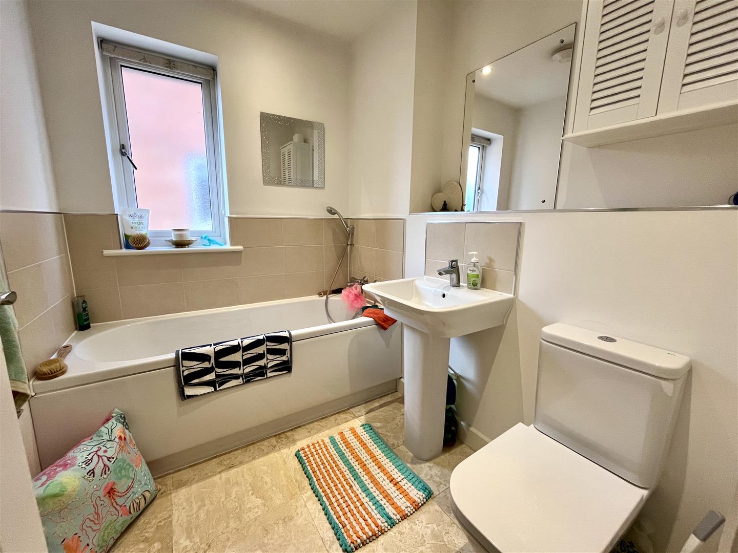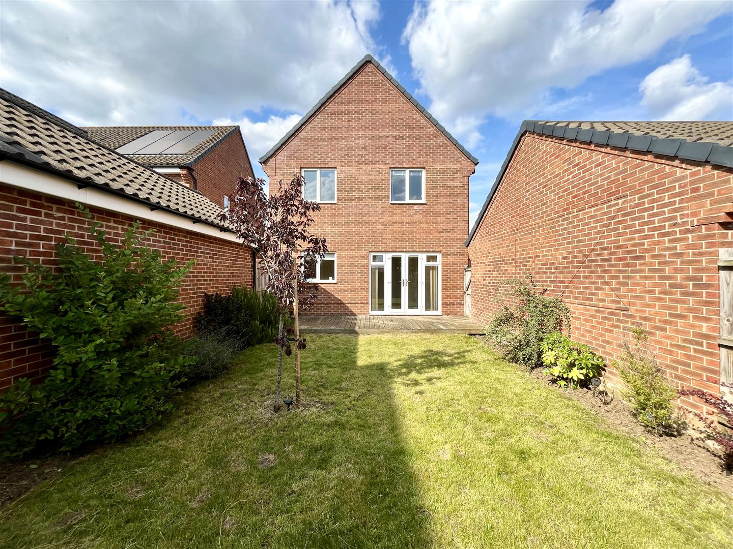 To the side of the property, there is a driveway leading to a brick-built garage and a side gate providing access to the rear garden. The rear garden is fully enclosed and mainly laid to lawn, with a shrub border. There is also a decking area, ideal for outdoor seating and entertaining.
