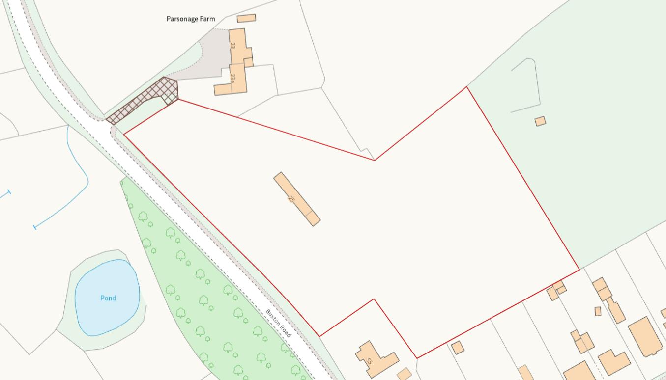 The site has access from a shared track off Buxton Road along the route shown brown.