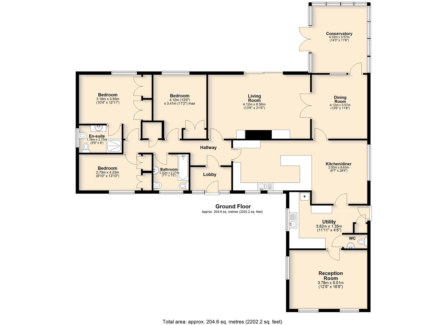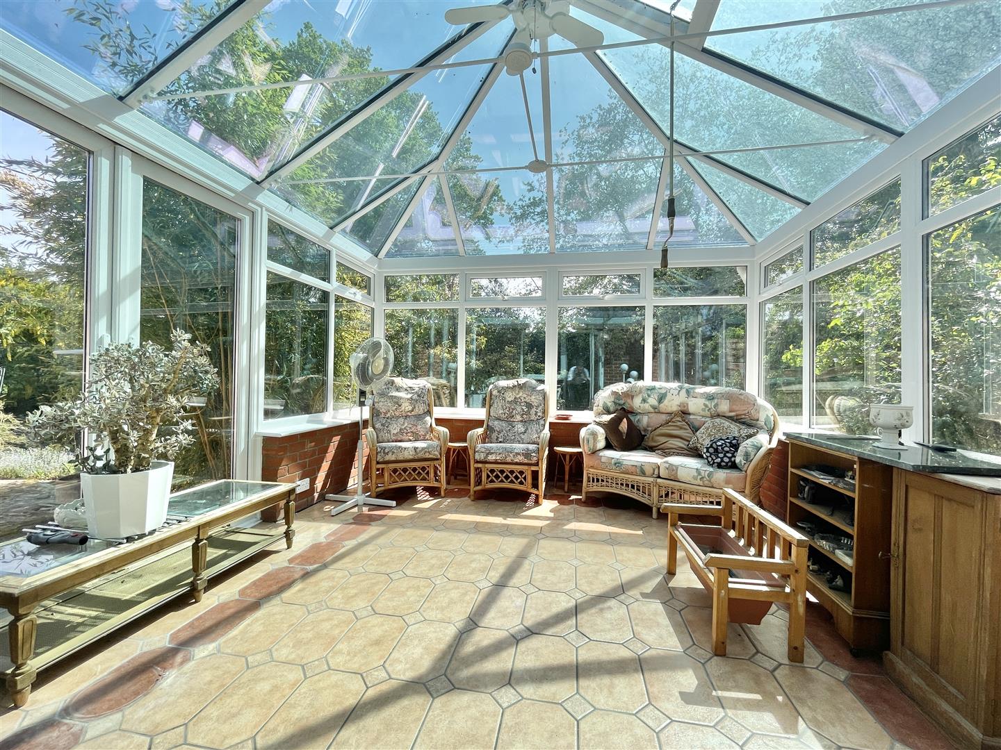 This sizeable bungalow offers over 2200 sq.ft of living accommodation, excluding the garage. There are three main bedrooms, with en-suite off the largest bedroom, along with further bedroom at the opposite end of the bungalow. If obtaining maximum space is your aim, then there’s a lot to love about this property, such as the large, spacious kitchen which has plenty of preparation space, as well as a sociable breakfast area, a separate utility and WC, as well as dining room with double doors separating the 20’ living Room. The generous brick and glazed conservatory off the dining room provides a great place to relax and enjoy the garden. Overall, the bungalow is neat and tidy, however certain areas of the decor may now require some preferential updating.