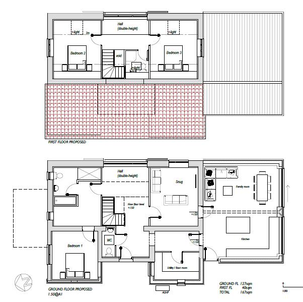 The consent allows for a single dwelling of 167m² (1797ft²) with accommodation over two floors and currently providing three bedrooms.