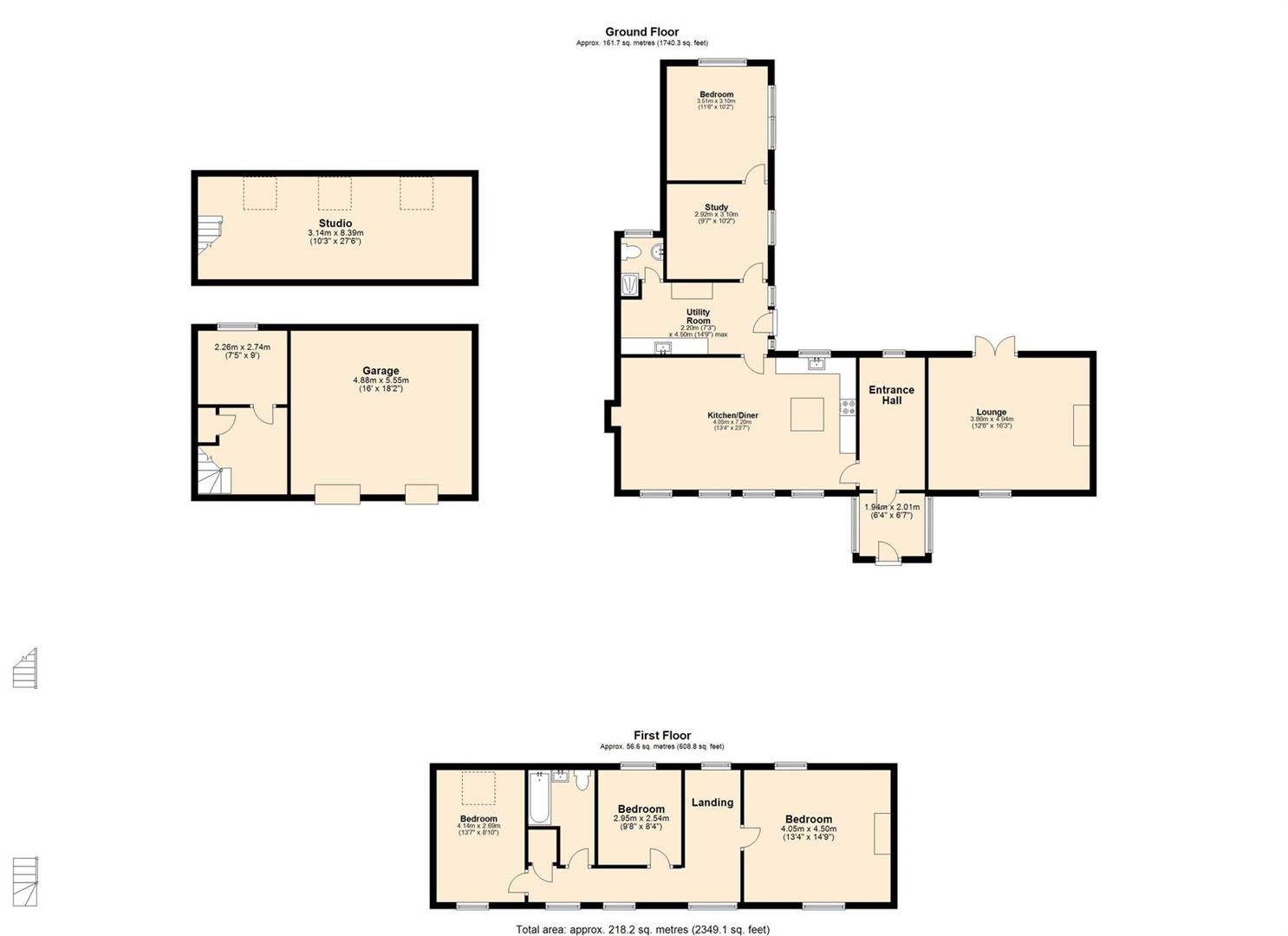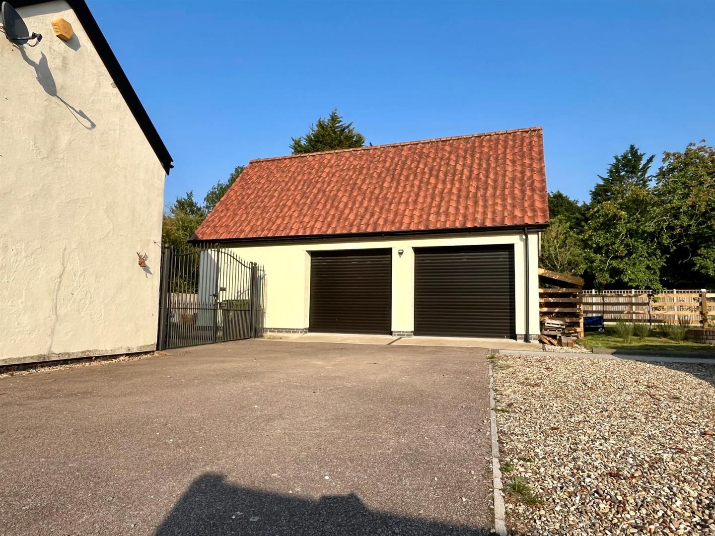 Externally, the property benefits from an oversized brick-built double garage with an additional storage area. Stairs lead up to a versatile first-floor studio, which could be used as a home office or cinema room, offering a fantastic space for work or leisure. The expansive garden space surrounding the home ensures a peaceful and private retreat, making it an idyllic family residence in a charming countryside setting.