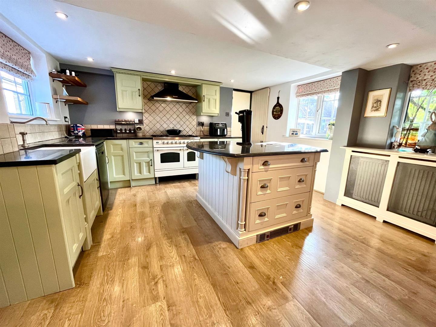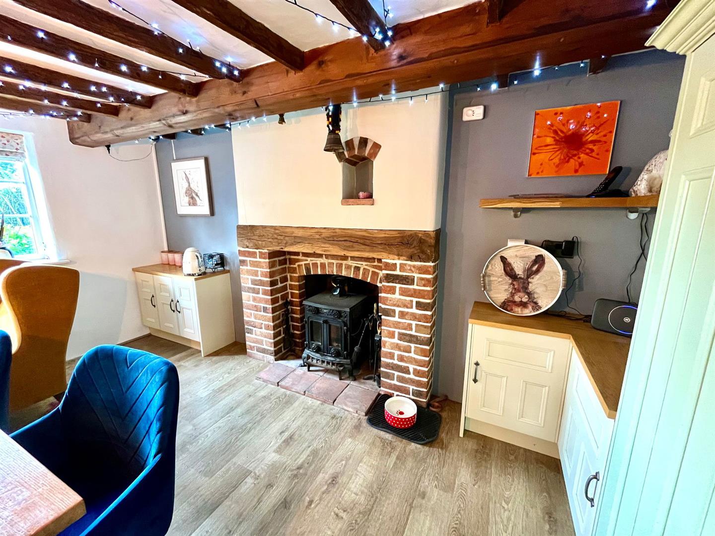 This period four-bedroom detached home, located on a 0.79 acre plot in the semi-rural area of Fundenhall, offers a harmonious blend of rustic charm and modern living. The heart of the home is a stunning kitchen/diner that beautifully marries contemporary units with original exposed beams ad wood burner creating a warm and inviting atmosphere. The formal lounge, complete with a wood burner, exudes cosiness, perfect for relaxing evenings.