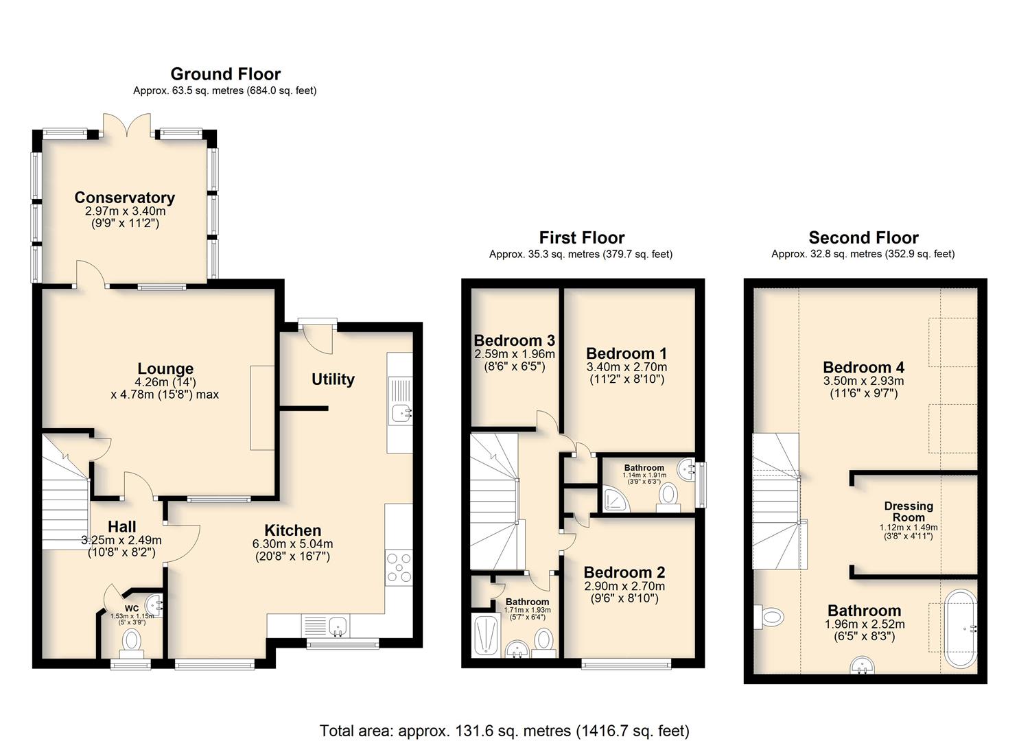 An impressive and beautifully extended semi-detached home, set within a popular modern development in the highly sought-after village of Hingham. The property offers spacious and flexible accommodation across three floors, comprising a welcoming entrance hall, cloakroom, generous lounge, and an open-plan kitchen/dining room with utility area, opening into a bright conservatory that overlooks the rear garden. On the first floor are three well-proportioned bedrooms, including a large double with en-suite shower room, alongside a stylish family shower room. A superb loft conversion provides a luxurious principal suite, complete with dressing room and a high-specification bathroom featuring a roll-top bath and separate shower cubicle.