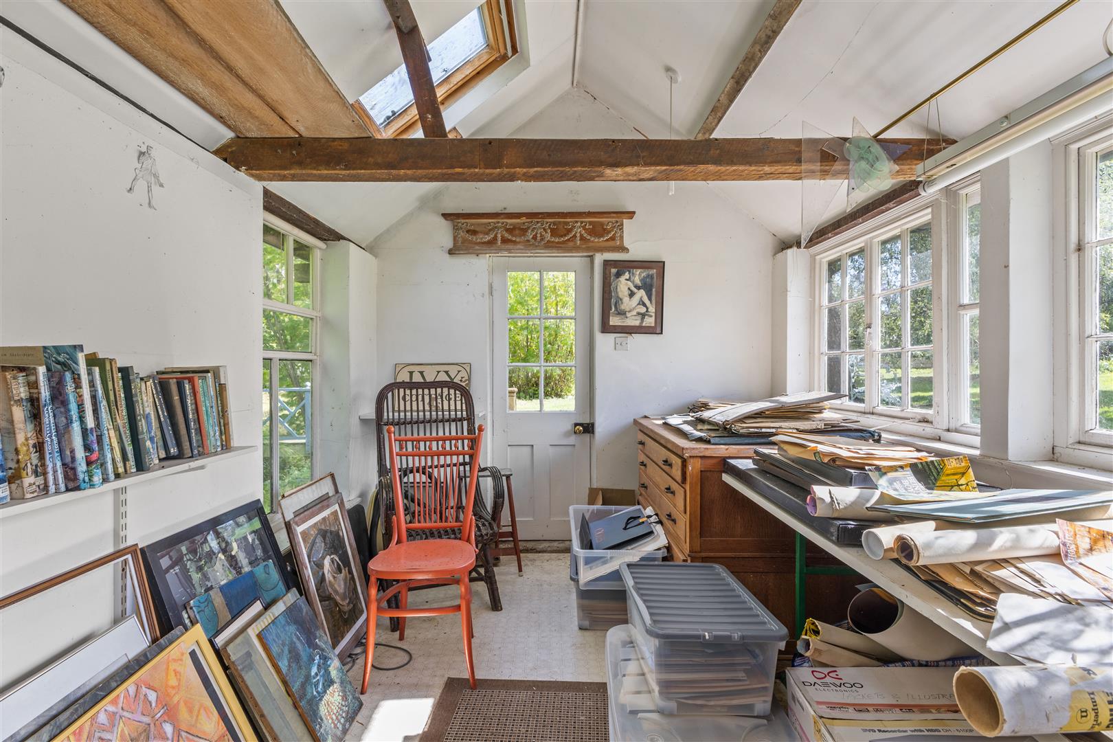 A versatile range of outbuildings lies within the grounds, historically used as artist studios. They remain perfectly suited to creative use but also offer the potential to convert into ancillary accommodation, subject to the necessary consents.