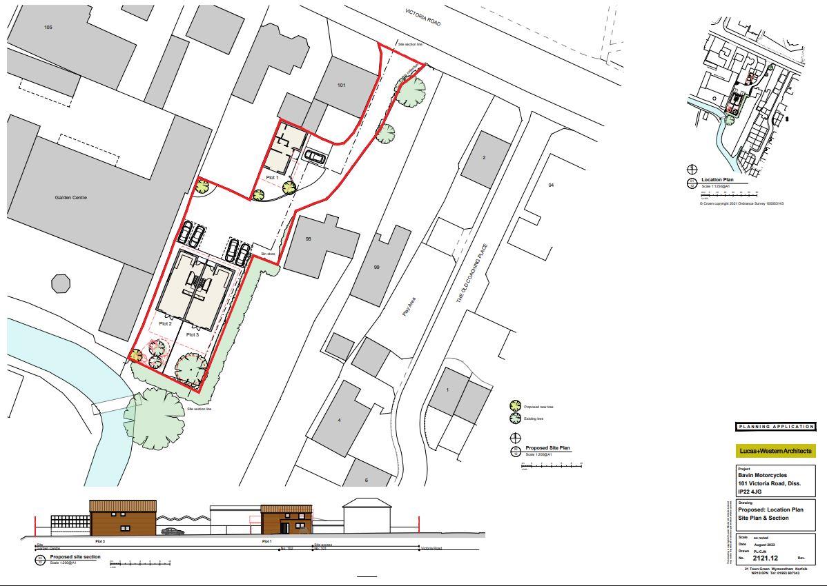 Interesting opportunity to acquire a town centre development site with permission for demolition of an engineering workshop and ancillary buildings and erection of 3 dwellings. LocationThe property is located off Victoria Road, set well back from the road along a private driveway. It is ideally situated for those wanting a central town location with all amenities within an easy walking distance. Diss is a thriving market town on the Norfolk/Suffolk border with a surprising number of independent specialist shops and businesses providing a wide variety of goods and services including three national brand supermarkets. The town has well regarded schools, good sporting and leisure facilities and a wide range of social activities. Diss rail station lies on the Norwich to London Liverpool Street mainline, a journey to London scheduled to take around 90 minutes. The regional, cultural and business centre of Norwich lies approximately 25 miles to the north.