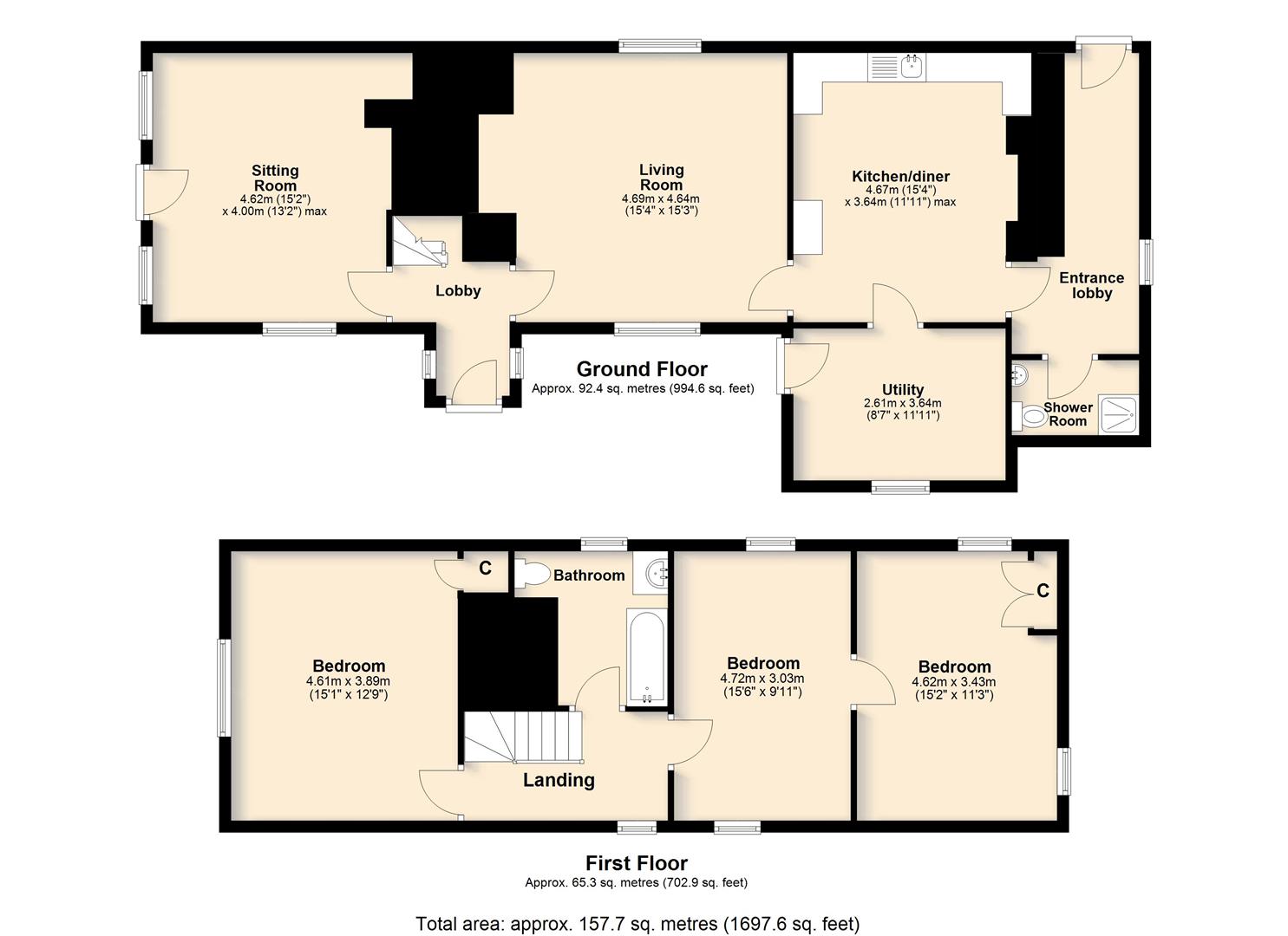 Grade II listed, cosy thatched cottage thought to date back to the 16th century, or slightly older, the property is packed with original character, such as Mullion window frames, inglenook fireplaces and a vaulted beamed ceiling in the bedroom, to name but a few. The property is linear with its layout of accommodation, which comprises a ground floor shower room, kitchen/diner, supporting utility, timbered living Room and separate bright dining room, which has flexibility in its use. As can be seen on the floorplan, there are 3 first floor bedrooms, all of which cater double beds, as well as a bathroom.