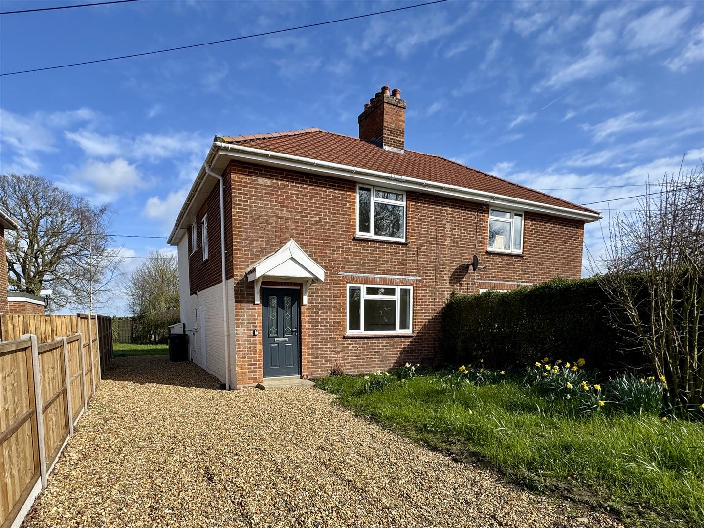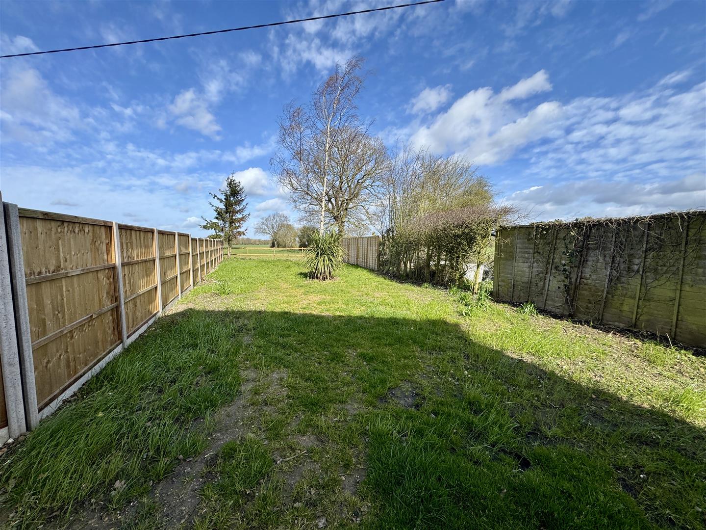 Long front garden laid to lawn, with driveway running alongside providing ample space for off road parking. Access down the side of the house continues through to the rear, which again, is a decent size and a blank canvas allowing for landscaping and the next owner to add their own mark to the garden. Post and rail fencing separates the garden from the fields beyond.