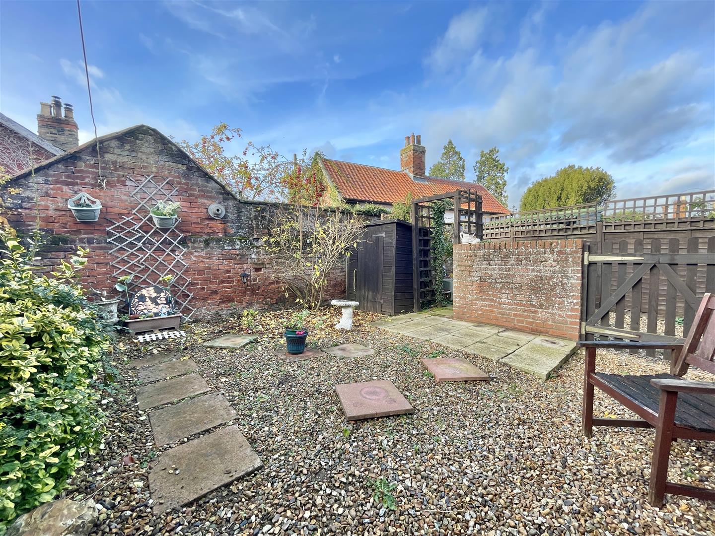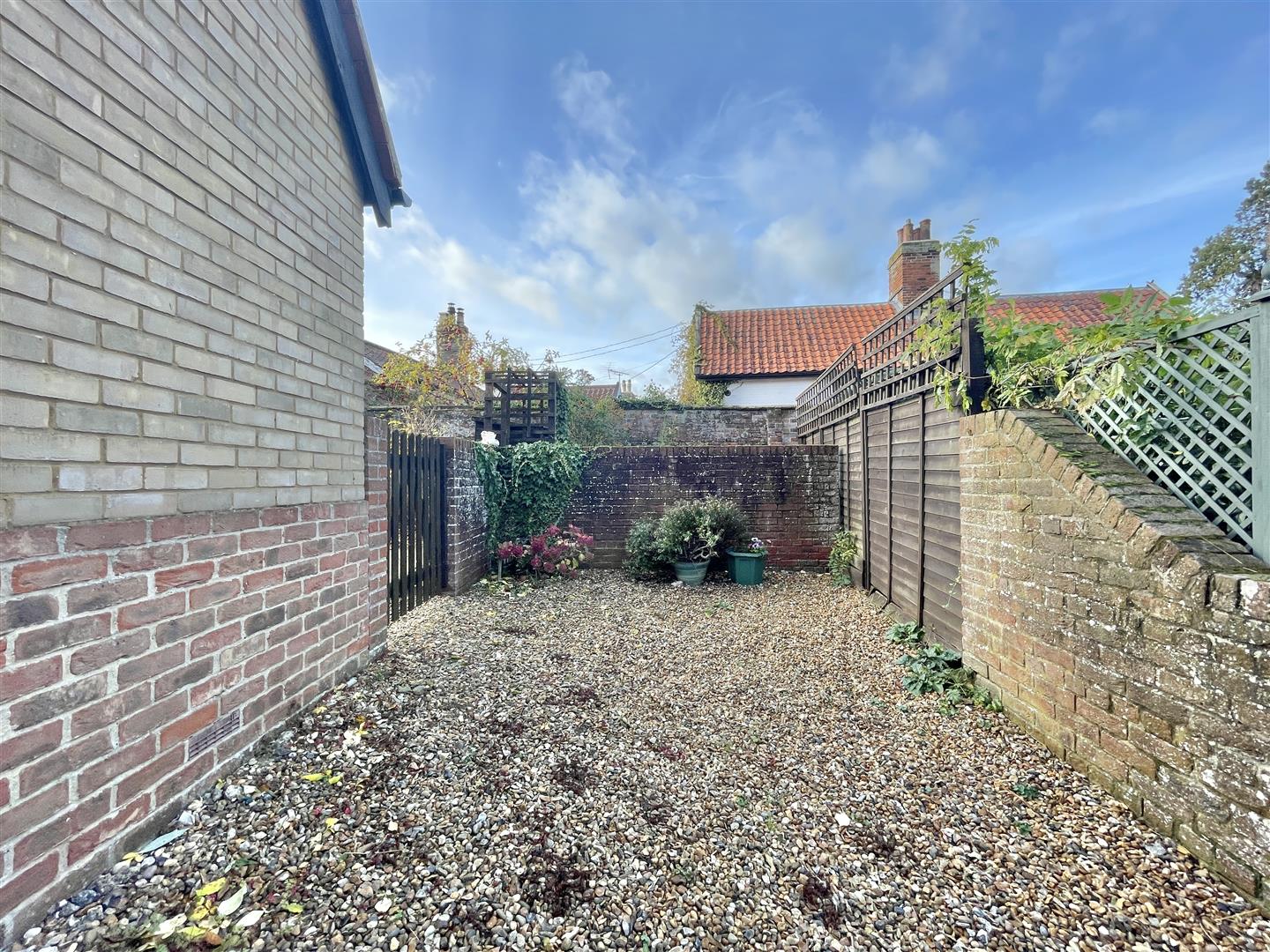 Driveway space running beside the property allows parking space for a couple of vehicles. A gate provides access into the enclosed and walled garden. The space is low maintenance offering good space for a seating area and plenty of potted plants.