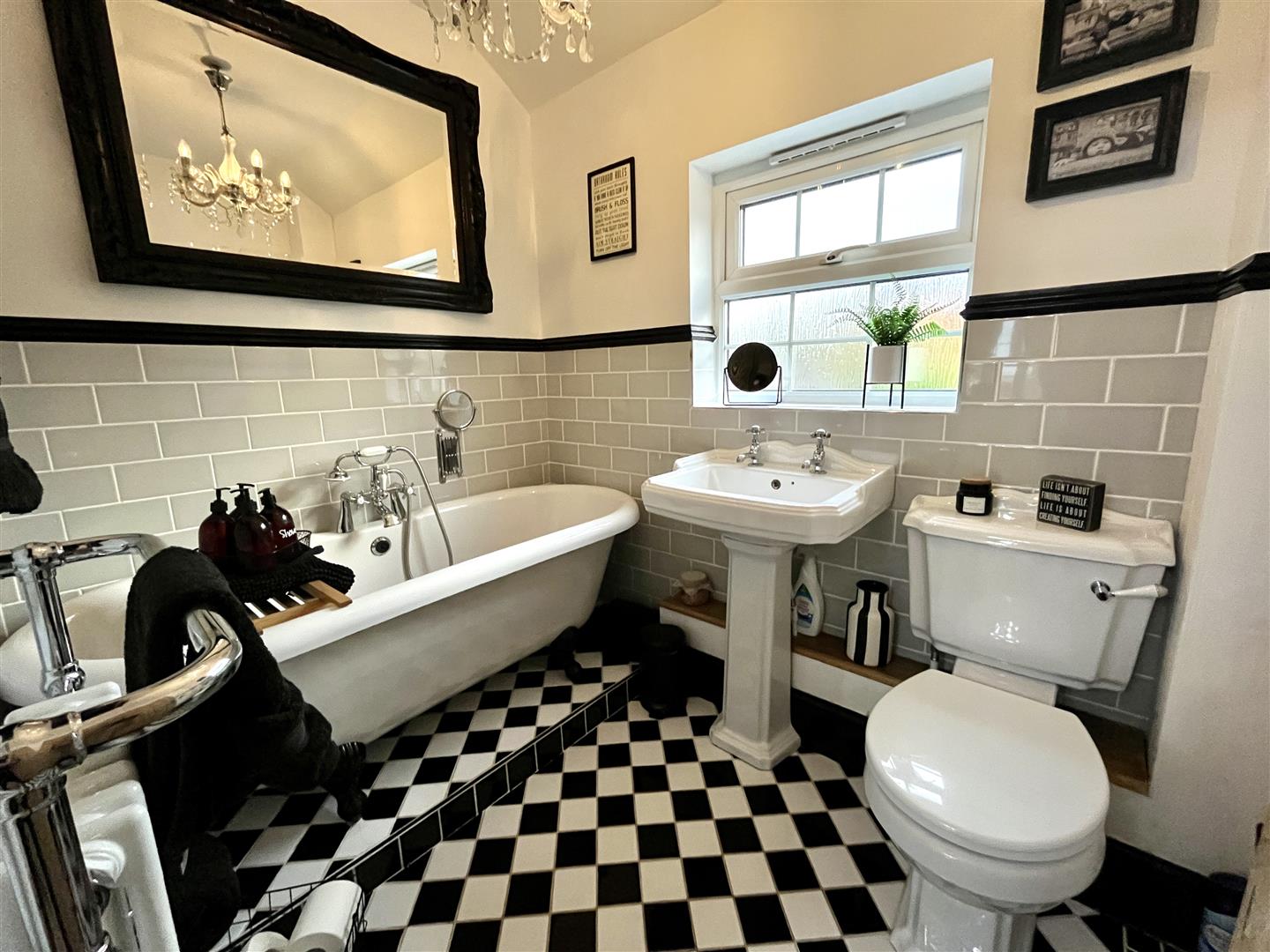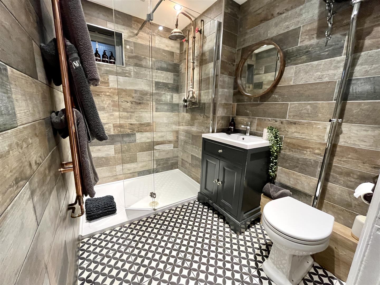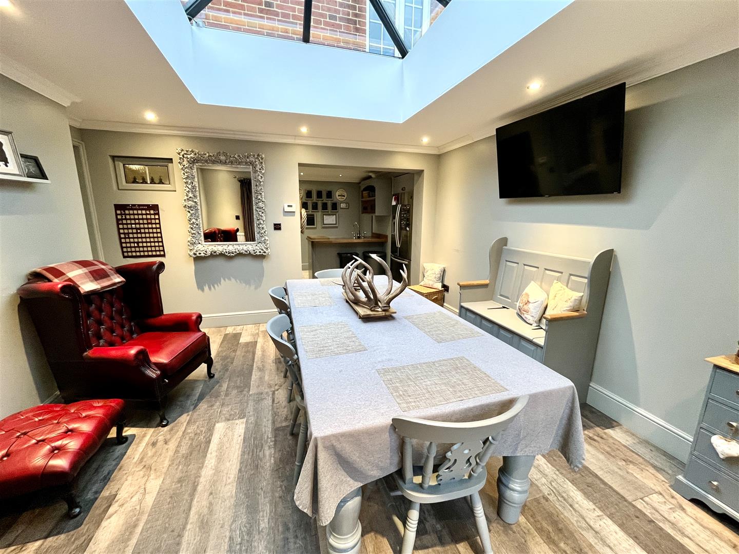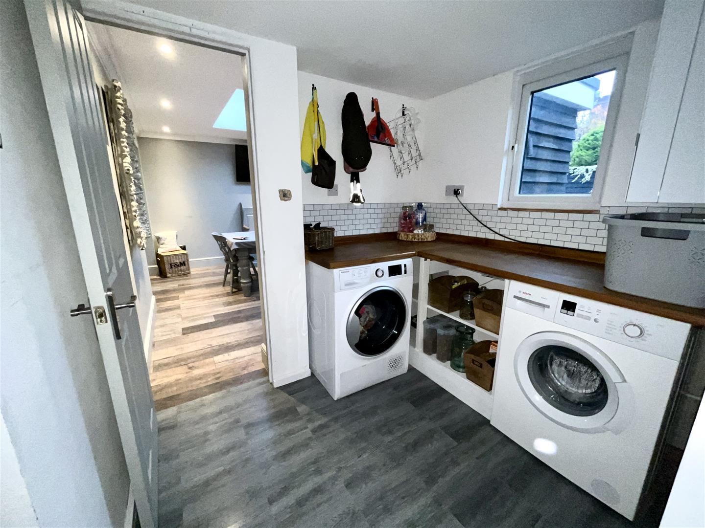 This beautifully presented three-bedroom semi-detached home has been thoughtfully remodeled throughout, offering an excellent blend of modern style and traditional character. The property opens with a welcoming entrance hall leading to a charming lounge complete with wood paneling and a wood-burning stove, creating a warm and inviting atmosphere. A contemporary luxury shower room adds further convenience on the ground floor. To the rear of the property, the impressive open-plan kitchen and dining area provides a superb space for family living and entertaining. The kitchen features a stylish central island with a porcelain butler sink, while the dining area benefits from a window light box and patio doors opening directly onto the rear garden. A separate utility room and a versatile playroom/gym provide additional practicality and flexibility for a growing household. The first floor offers three generously sized bedrooms, including a main bedroom enhanced by an attractive cast-iron fireplace. A beautifully appointed family bathroom completes the accommodation, fitted with a classic roll-top bath that adds a touch of luxury. Externally, the property enjoys an enclosed rear garden, perfect for relaxing or outdoor dining.