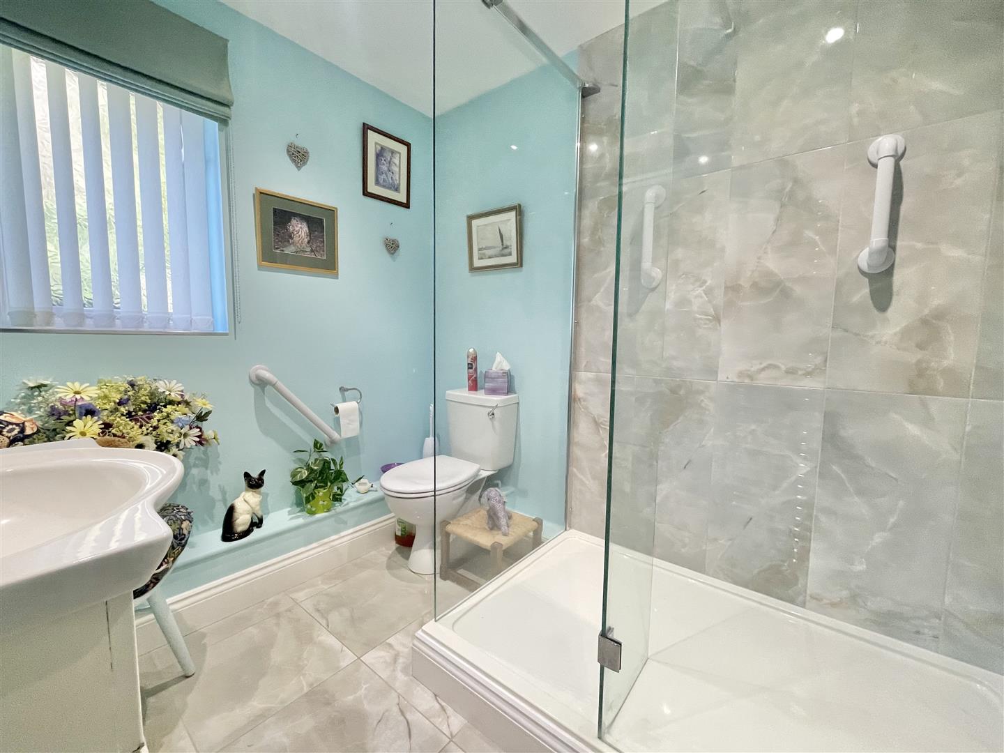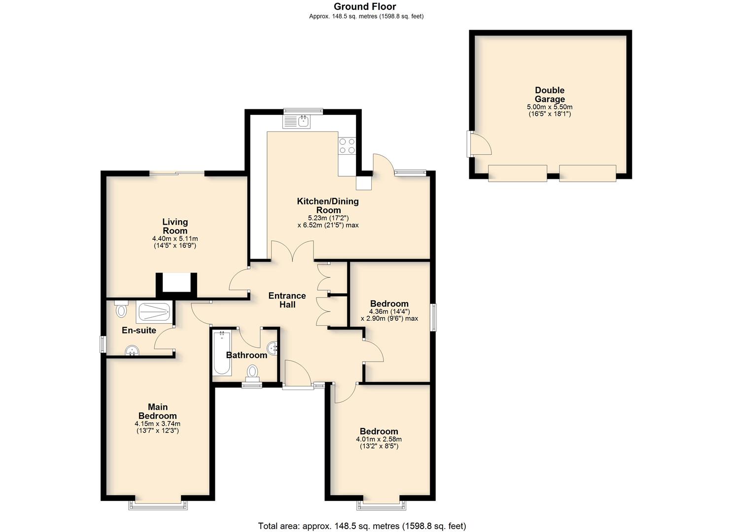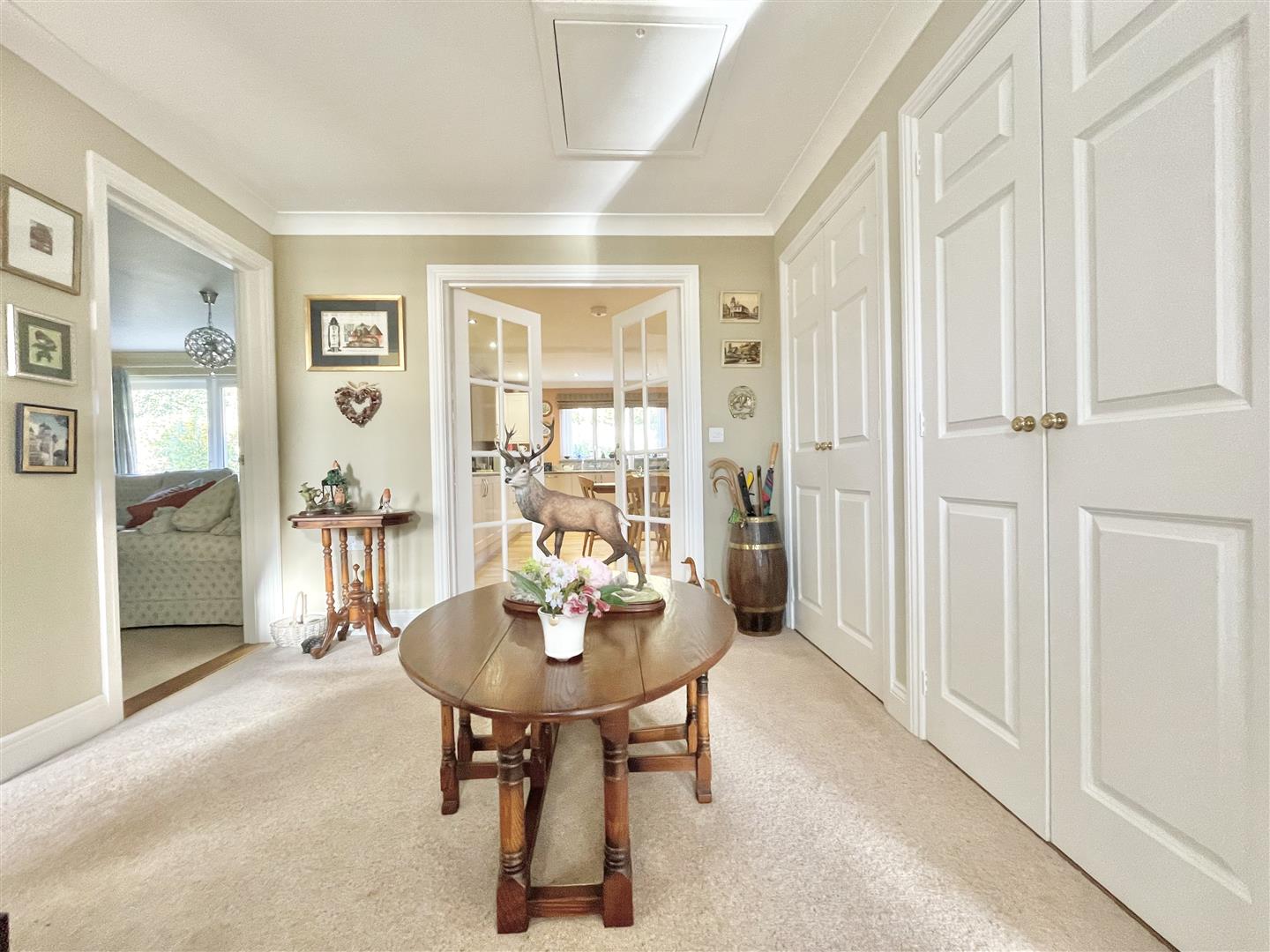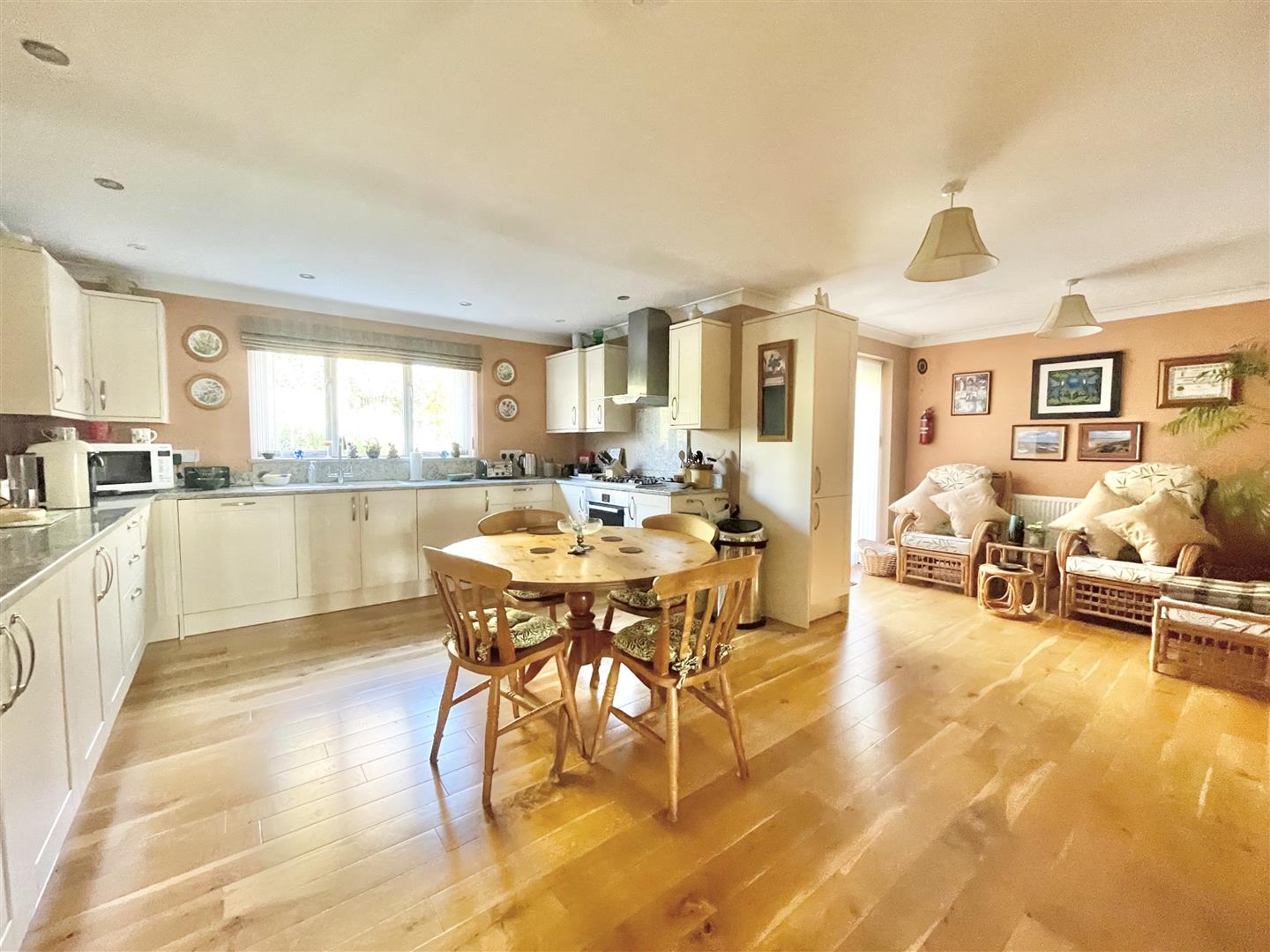 This spacious bungalow was built in 2013 by well-regarded local builder Danny Ward. This small cul de sac is set up of just six properties. A large square central entrance hall gives access to all principal rooms and creates an immediate sense of space. The kitchen/dining room is a particularly good feature, fitted with a range of modern units and integrated Bosch appliances including washing machine, dishwasher and fridge/freezer. French doors open to the rear terrace, making this a bright and sociable room. The sitting room is set to the rear of the property and includes a feature fireplace, providing an attractive focal point. There are three bedrooms, all well-proportioned. The principal bedroom benefits from its own en-suite shower room, while the remaining bedrooms are served by the family bathroom, fitted with a suite of low-level WC, bath and handbasin.