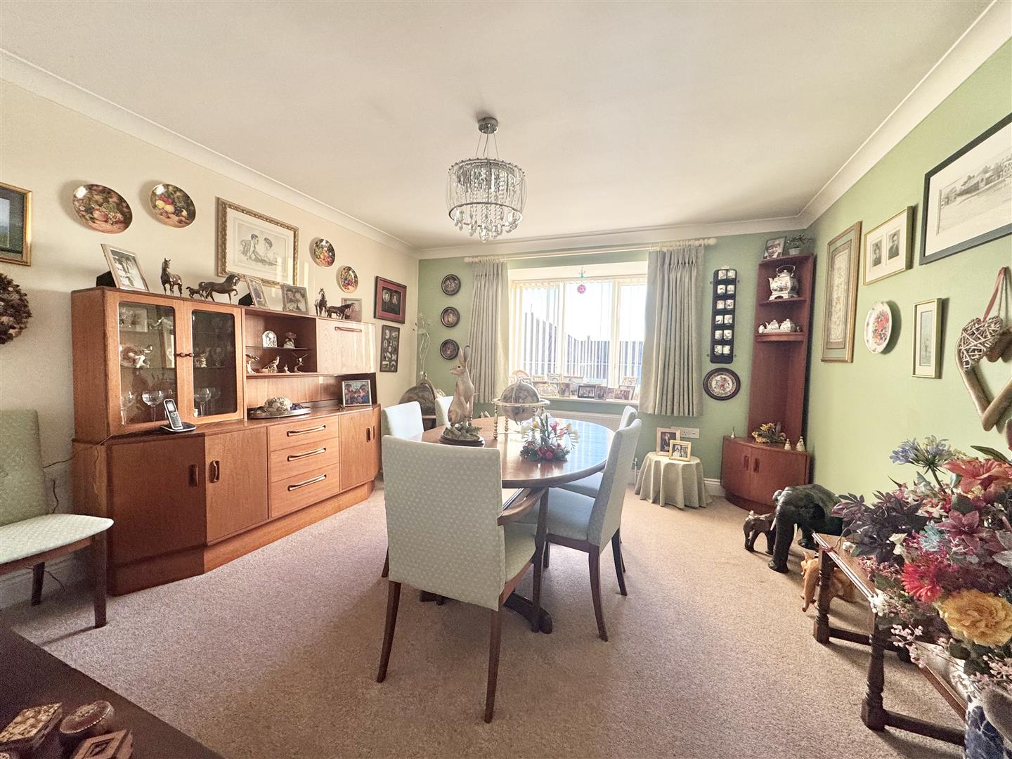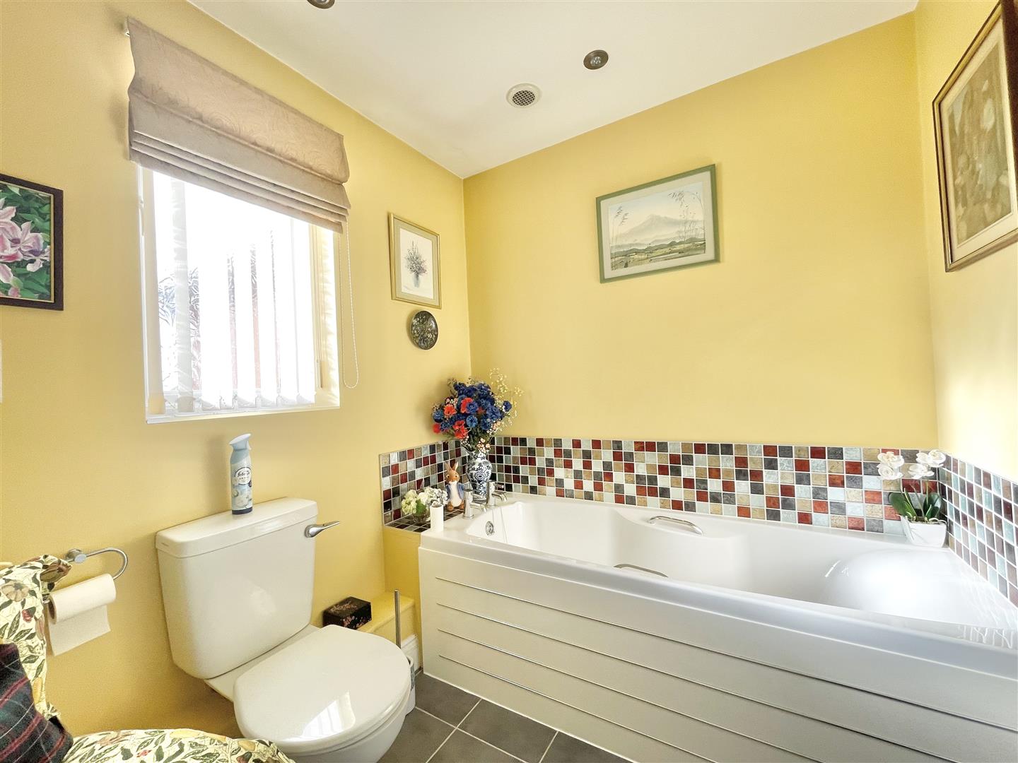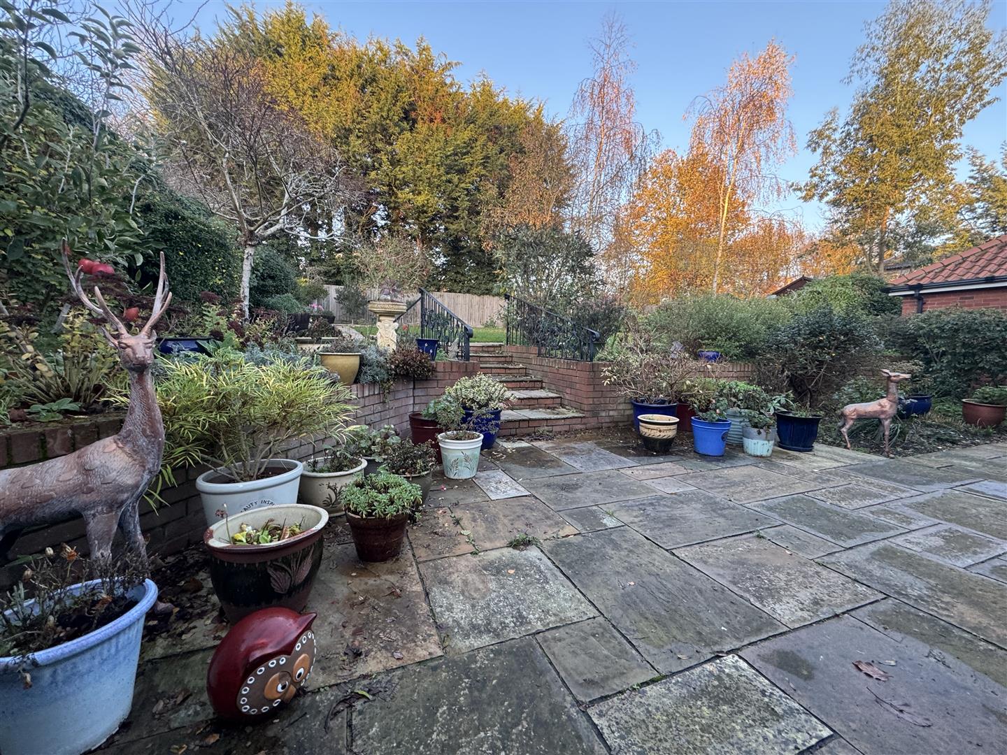 The rear garden is neatly arranged with a generous patio immediately outside the kitchen/diner. A few shallow steps rise to a lawned garden which is incredibly well stocked with a variety of plants with a low maintenance wood-chipped border and silver birch trees set to the centre, offering light shade and interest throughout the year. There is a generous patio with a substantial sunshade awning for the summer months.