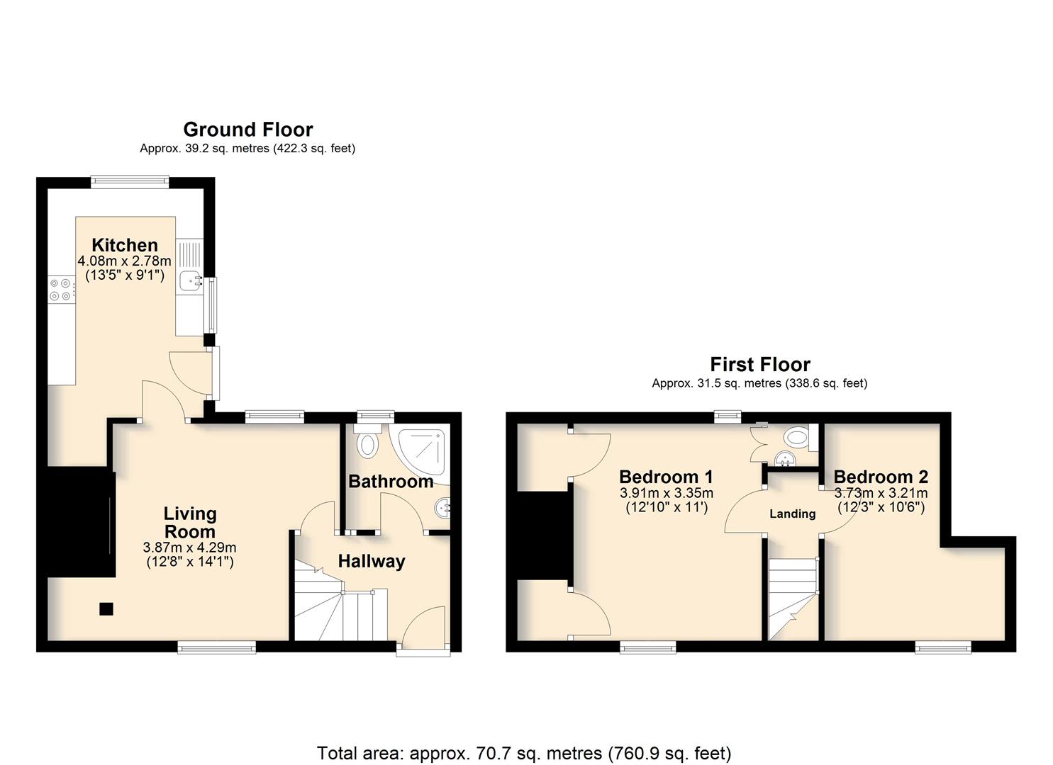 Upstairs, the main bedroom enjoys its own WC with handwash basin, two built-in cupboards, and another dual aspect. The second bedroom is positioned off the landing and works well for guests, children, or as a home office.