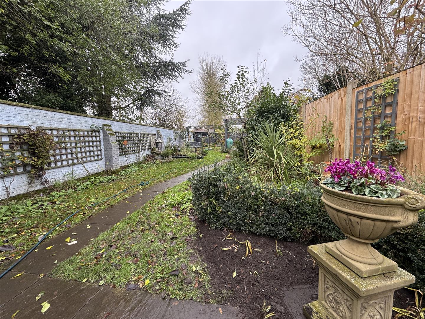 The rear garden is particularly appealing. A private terrace sits directly behind the cottage, perfect for outdoor meals or simply enjoying the surroundings. From here, a path winds through the garden, passing a pond and leading to a raised seating area beneath a pergola. Additional features include a rear access gate, shed, and a peaceful seating spot at the far end – an ideal escape within your own grounds.