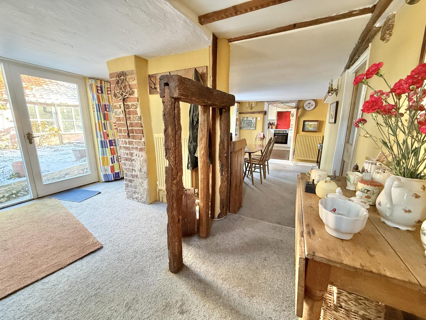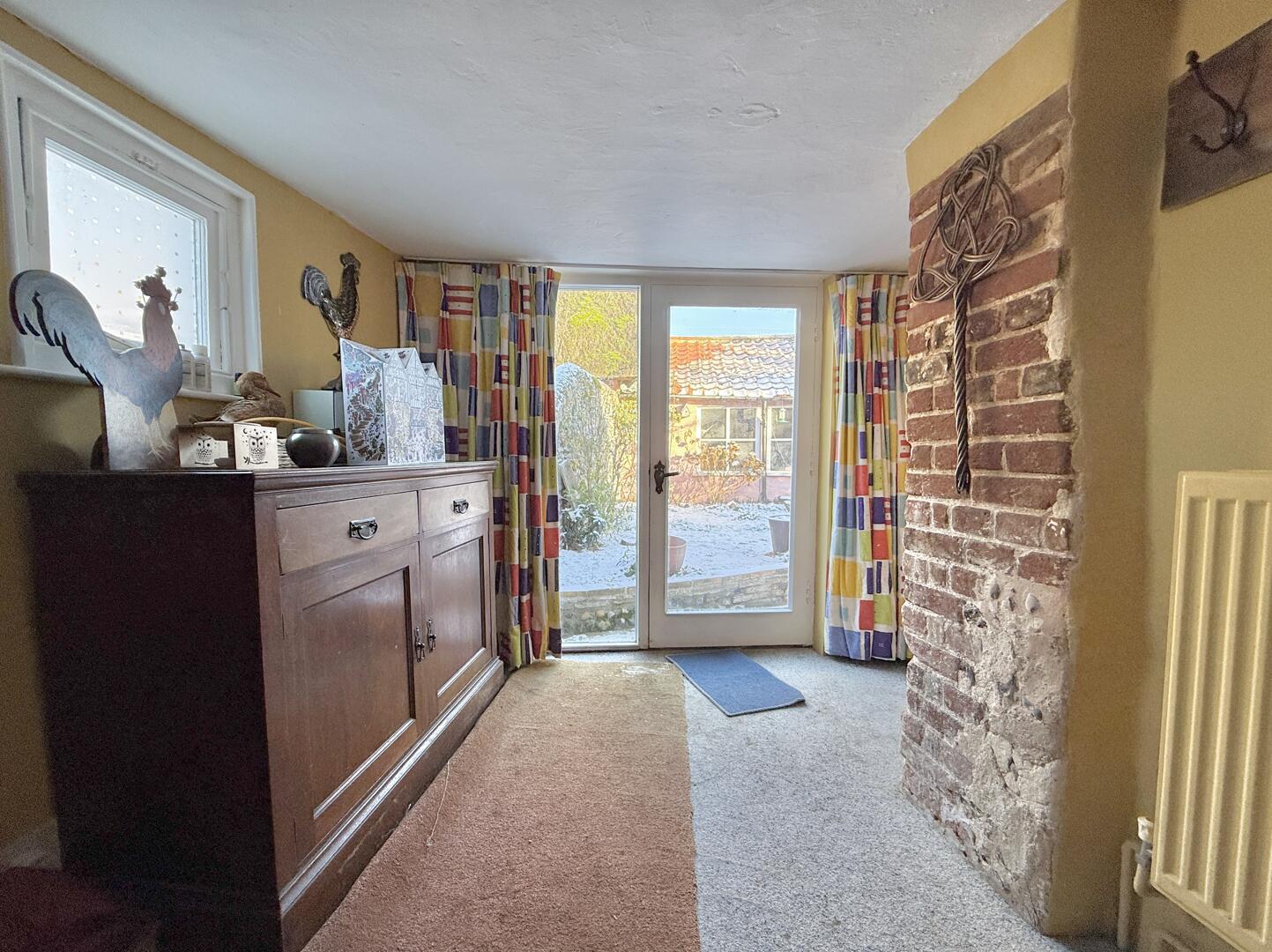 Pretty detached cottage oozing charm and original features, such as an inglenook fireplace and exposed timbers. 3 double bedrooms. 3 reception rooms. Established gardens with fruit trees. Driveway and sizable garage/workshop. Short walk from village shop. No onward chain. The PropertyPeelers, once known historically for being the village bake house, is an attractive, detached cottage located close to the heart of Hopton village centre. Packed with character, many of its features still remain, including the imposing inglenook fireplace in the cosy living room, various exposed beams and wonderful oak timbers seen in the main bedroom. There is a formal layout on the ground floor, with two front reception rooms separated by the central entrance porch; whilst a supporting dining room with French doors is found just off the fitted kitchen. Three good size double bedrooms and a bathroom complete the accommodation, which totals around 1300 sq.ft.
