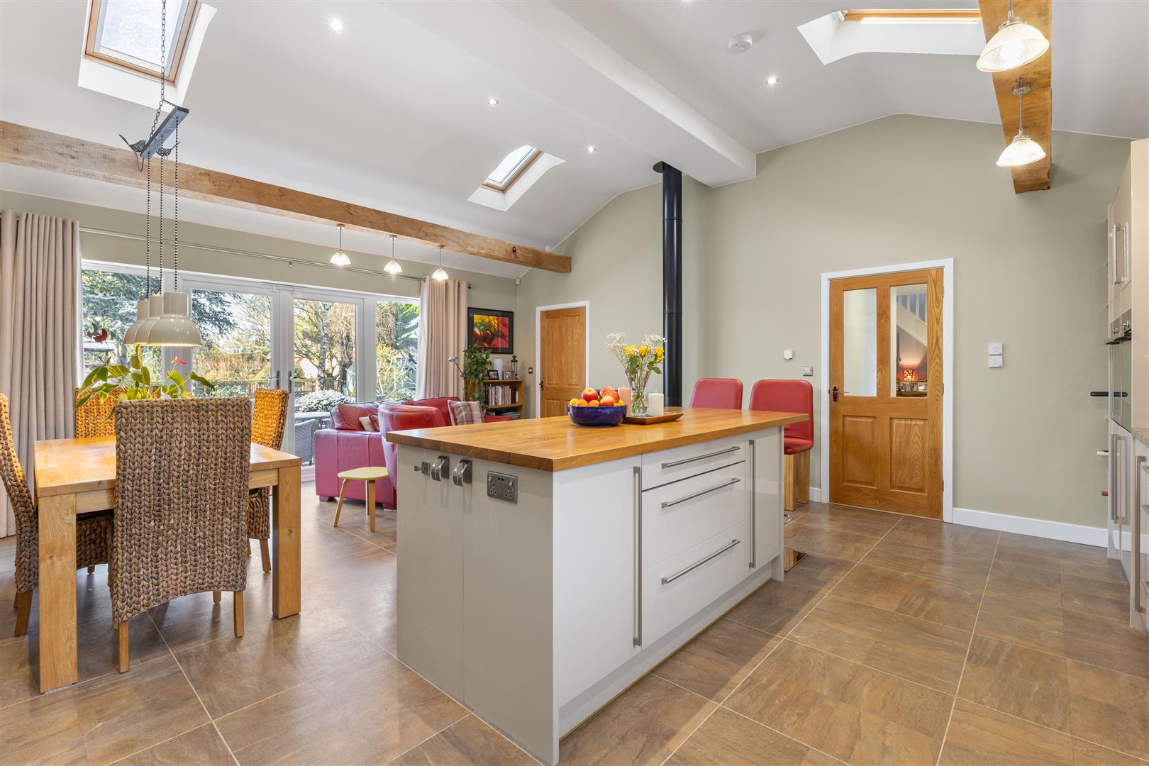 This superbly presented and comfortable detached residence offers accommodation ideally suited to families seeking their own personal space, an aspect highlighted by its layout, with several bedrooms spread across both floors which in the main benefit from an en-suite or a shower close by. In recent years the property has been thoughtfully and cleverly extended to the side, which links the main house through to a modern, ground floor guest bedroom suite with its own private entrance. The house has also undergone a series of beneficial improvements which have significantly enhanced its energy efficiency and reduced running costs (now B rated EPC), these primarily include solar panels with battery storage and a rainwater collection system (for use in the garden) to name just a few. These features aside, the house holds a wonderful traditional feel - the living room is light and well proportioned, with prominent chimney breast encasing a warming wood burner that creates a focal point in the room. Moving to the other side of the house, the 'stand out' kitchen/family room is great place to spend time, providing a large, spacious place to cook, entertain guests or simply relax in front of the wood burner.