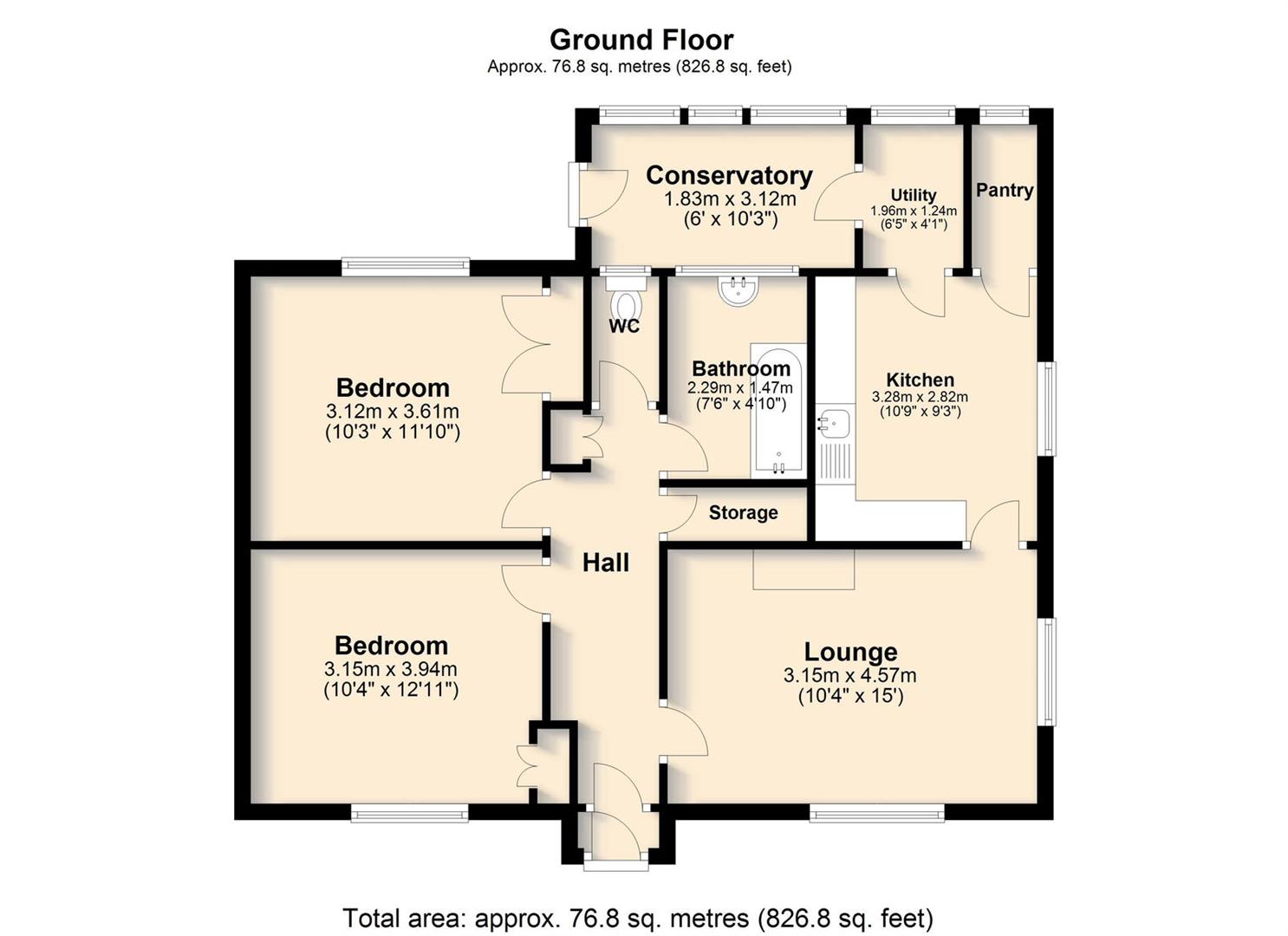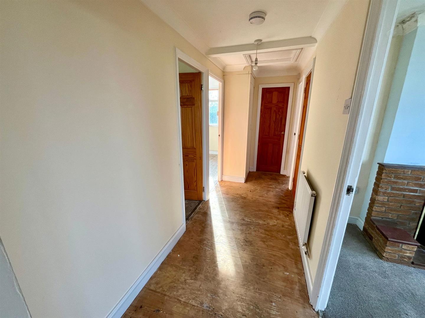 The bungalow is understood to be of non-conventional construction ‘prefab’ with asbestos inner walls. The exterior is brick faced beneath a concrete tiled roof. There is a UPVC fascia. Windows are wood framed and secondary glazed. The bungalow offers two good size bedrooms, a family bathroom, a lounge with dual aspect outlook, kitchen with pantry and a lean-to. Some moderisation is required.