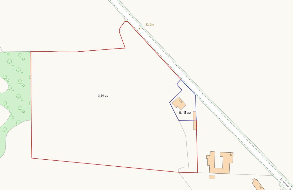 The bungalow and immediate grounds are approximately 0.15 acres with hard standing for several vehicles with access gates leading to 3.89 acres of land currently down as grassland.