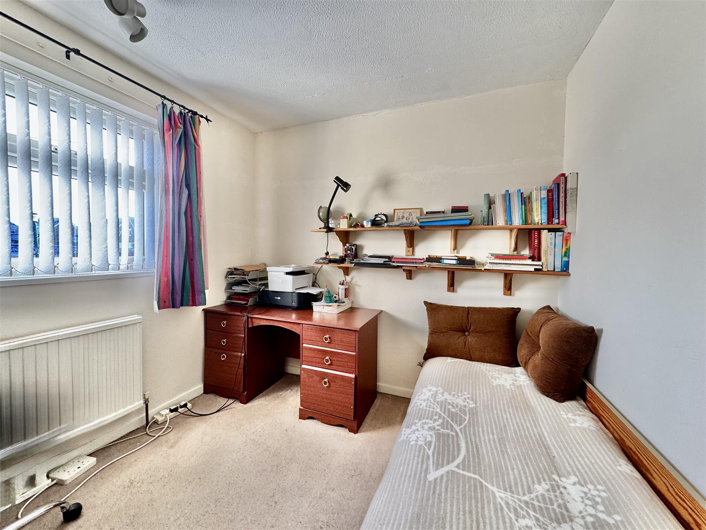 Upstairs, the accommodation comprises three bedrooms, two of which are comfortable doubles. The family bathroom is bright and neutrally presented, fitted with a white suite.