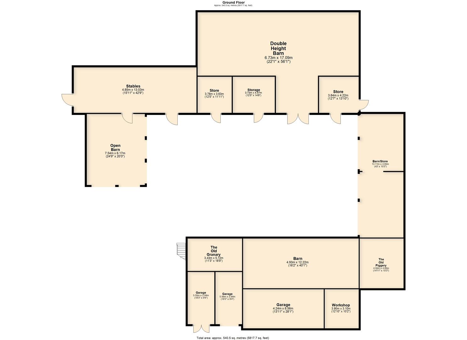 The barns and outbuildings measure at around 5,600 sq ft internally. This impressive complex of red brick Norfolk barns occupy an extremely large area of hard standing and have easy access to the driveway approach. They are made up of stabling, livestock housing, garaging, a workshop and a two-storey granary. The notable double-height mid barn is a round 60' and features incredible double doors to the land beyond. There is also a pretty flint wash house and store which holds a multitude of uses and potential too.