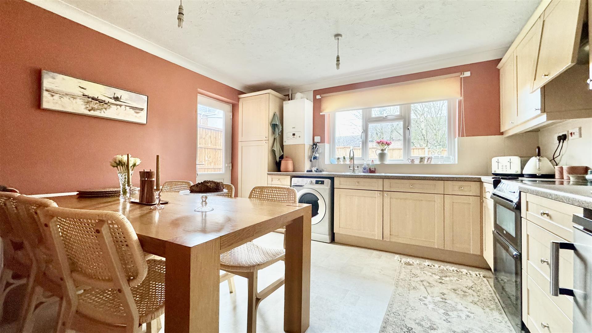 Occupying a tucked-away position at the end of a small close, the property enjoys a degree of privacy and minimal passing traffic. To the front, a shingle driveway provides ample off-road parking and leads to the attached single garage. The garage is equipped with an up and over door, power and lighting, useful eaves storage, and a rear personnel door giving convenient access into the garden. The rear garden is of a particularly good size and benefits from a pleasant leafy backdrop. The boundaries are now enclosed by recently replaced panel fencing, offering improved privacy and a neat, well-maintained appearance. The current owners have recently landscaped the rear garden with raised borders to the edges and pleasant patio accessed directly from the kitchen.