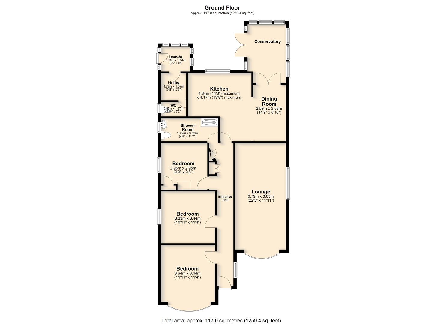 The Bungalow can be found in a sought-after location, this charming three-bedroom bungalow offers a wonderful blend of space, comfort, and practicality. Stepping through the front door, you are greeted by a welcoming entrance hall, the bay-fronted lounge is a particularly attractive feature, bathed in natural light and providing a peaceful setting for relaxation or entertaining. The open-plan kitchen and dining area form the heart of the home, perfect for both everyday family life and larger gatherings. A convenient utility room provides additional storage and laundry space, while the cloakroom adds extra convenience for guests. The bungalow’s three well-proportioned bedrooms offer plenty of space for family or guests. The shower room offers a contemporary and functional space and could be converted back to a bathroom with ease. To the rear there is a porch giving access to the garden,. There is a large conservatory overlooking the garden with views overlooking the pond. With ample natural light and well-thought-out spaces throughout, this property combines comfort and practicality in equal measure. Whether you’re downsizing, starting a family, or seeking a peaceful retreat, this bungalow provides an excellent opportunity for a variety of buyers.