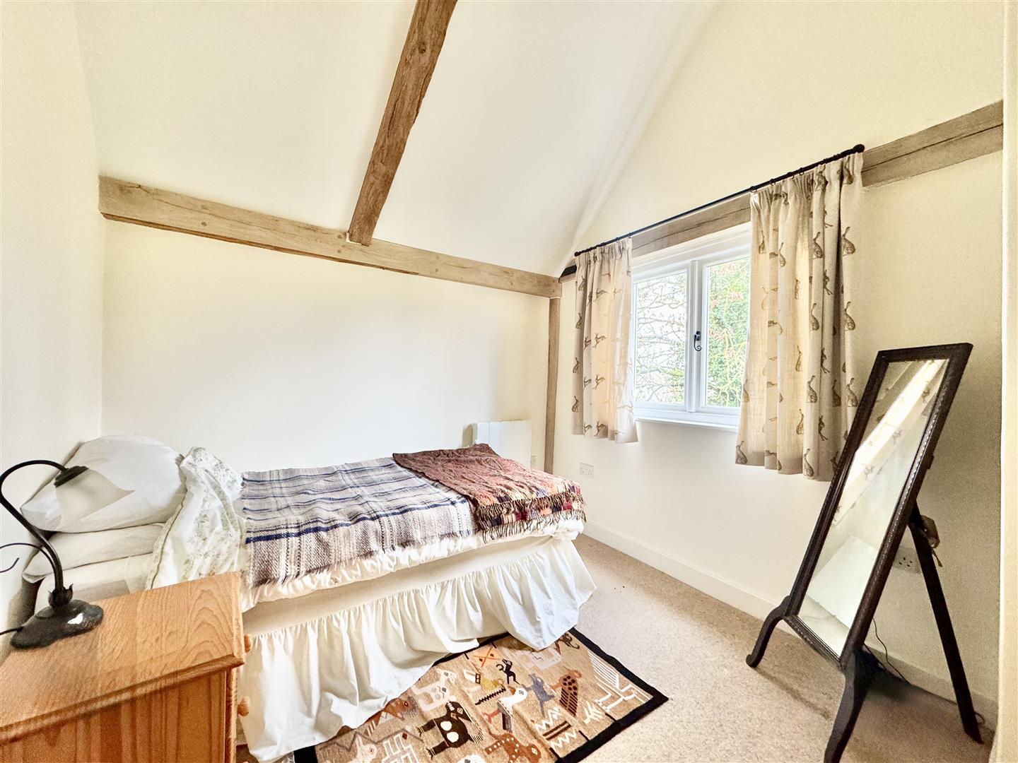 The property benefits from a single-bay cart lodge providing covered parking together with an additional off-road parking space on the gravel adjacent to the garden. The garden is mainly laid to lawn, bordered by post-and-rail fencing and enjoys open views to the side. To the front, there is attractive box hedging, adding to the property’s kerb appeal.