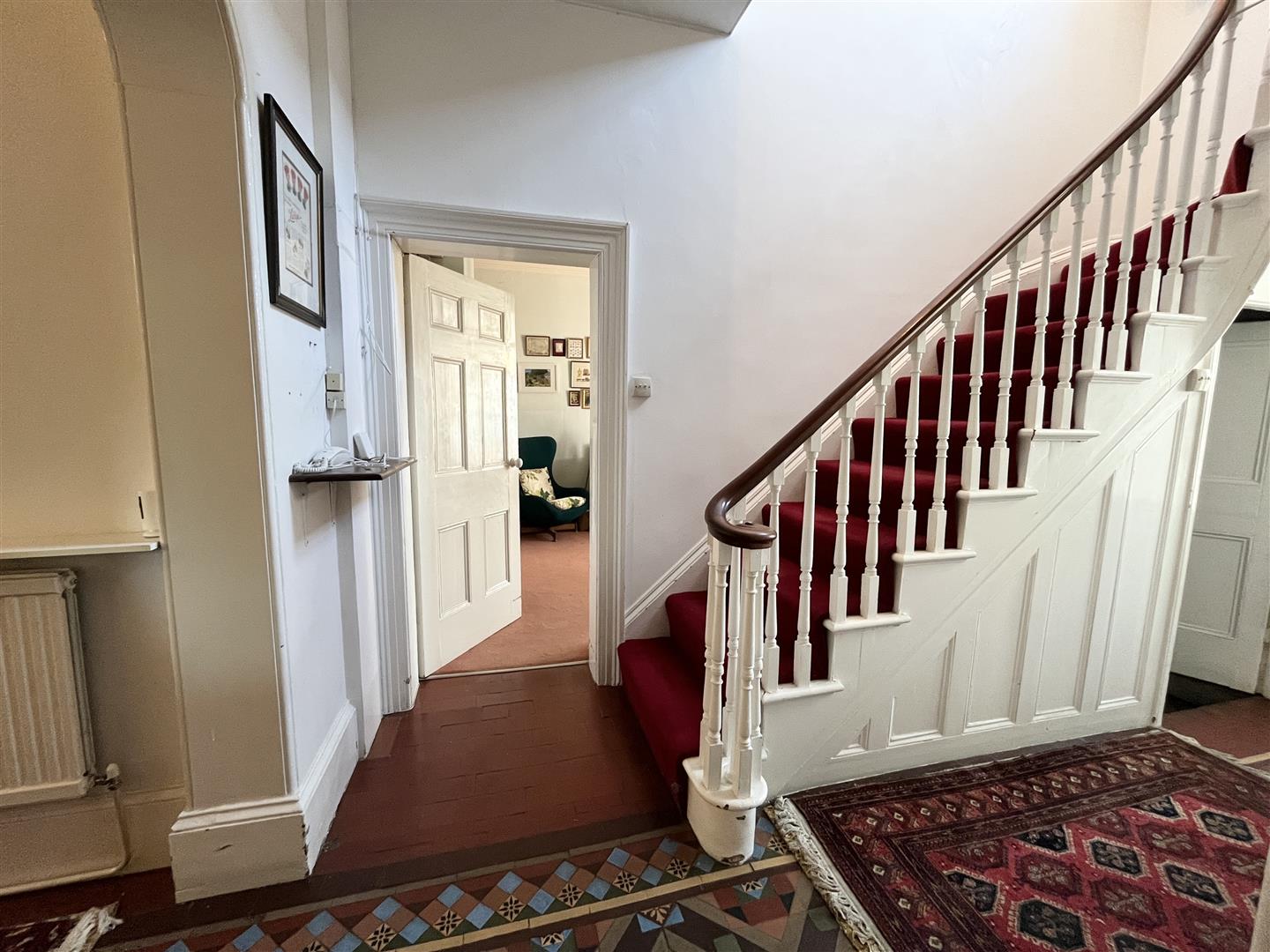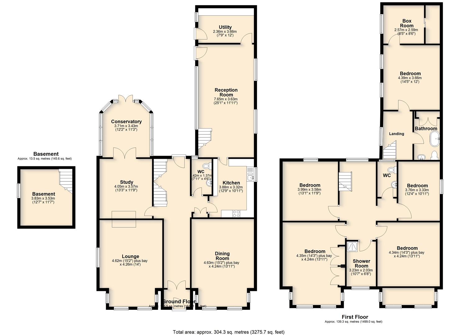 This handsome five double bedroom detached period residence occupies an impressive position on its own generous plot, offering substantial and highly versatile accommodation arranged over two floors. Retaining a wealth of character features, the property blends elegant proportions with practical family living. The welcoming entrance hall immediately sets the tone, with attractive tiled flooring and a striking feature banister rising to the first floor. The bay-fronted lounge enjoys a dual aspect, flooding the room with natural light and highlighting the high ceilings typical of homes of this era. A second bay-fronted reception room provides a formal dining space, comfortably accommodating a large table, ideal for entertaining and family occasions. The study offers a quiet and comfortable workspace with access through to the conservatory, which enjoys pleasant views over the garden. The fitted kitchen leads to a further reception room with an impressive picture window, a flexible space that has served a variety of uses over the years. A separate utility room and useable basement completes the ground floor accommodation. To the first floor, the landing is enhanced by a sash window overlooking the garden, creating a bright and airy feel and fantastic view over the garden an ideal view to start the day. There are two generous bay-fronted bedrooms to the front elevation, together with two further double bedrooms. The family shower room serves the main accommodation and separate w.c, a fifth double bedroom with adjacent box room which could be adapted to a shower room or dressing room and additional bathroom accessed via its own staircase from the ground floor presents excellent potential for annex-style living, guest accommodation or multi-generational use.