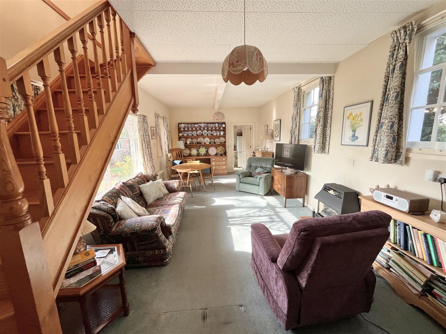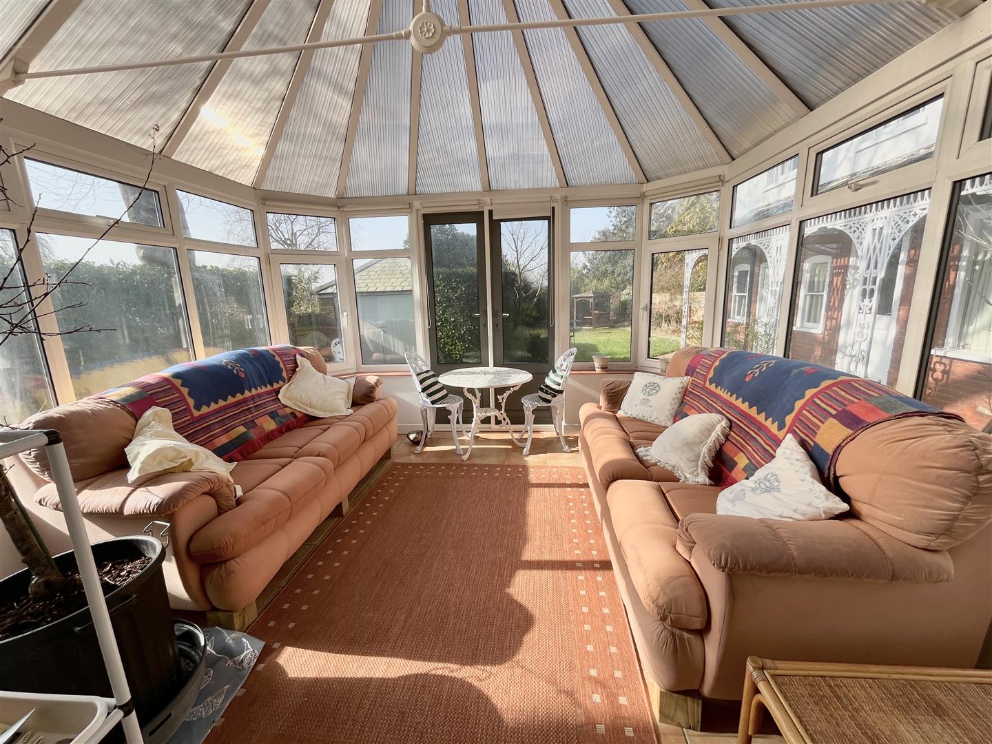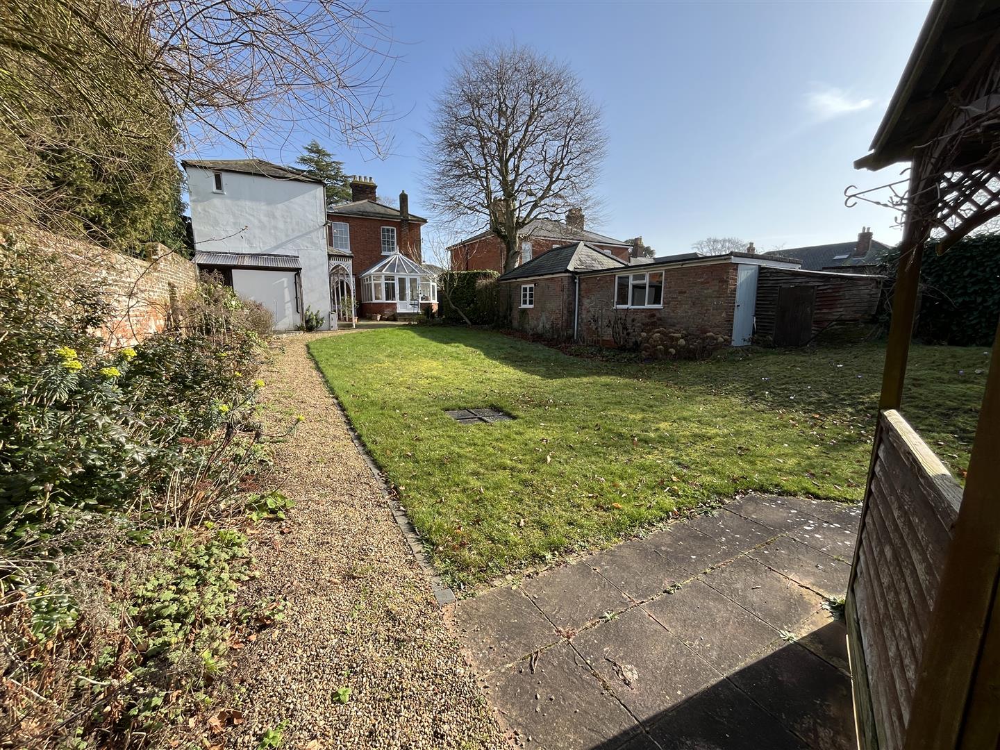 The property occupies a generous plot and is approached via a gravelled pull-in driveway set behind attractive wrought iron railings, providing ample off-road parking and access to an extended brick-built garage with workspace positioned to the side of the home. A particular feature of this residence is the beautifully established rear garden, where it is evident that considerable time, care and attention have been devoted over the years. Immediately upon stepping out from the rear door, an ornate veranda creates a charming seating area and acts as an elegant transition into the formal lawn. Beyond, a delightful sunken rockery shrub garden incorporates a pond, creating a peaceful focal point within the landscape. The garden offers a variety of seating areas designed to capture the sun throughout the day, making it ideal for both relaxation and entertaining. A winding pathway leads to a secluded working garden, thoughtfully arranged with a greenhouse, potting area and raised beds for fruit, vegetables and flowers. This productive space has yielded an abundance of home grown produce over the years and will undoubtedly appeal to keen gardeners.