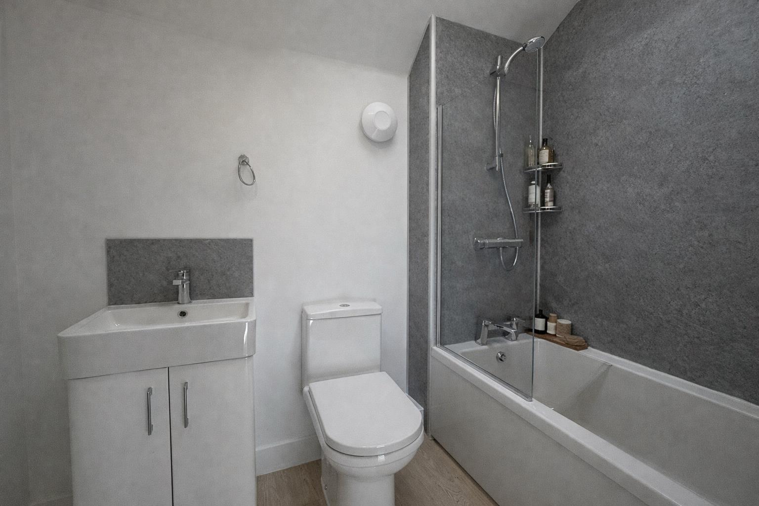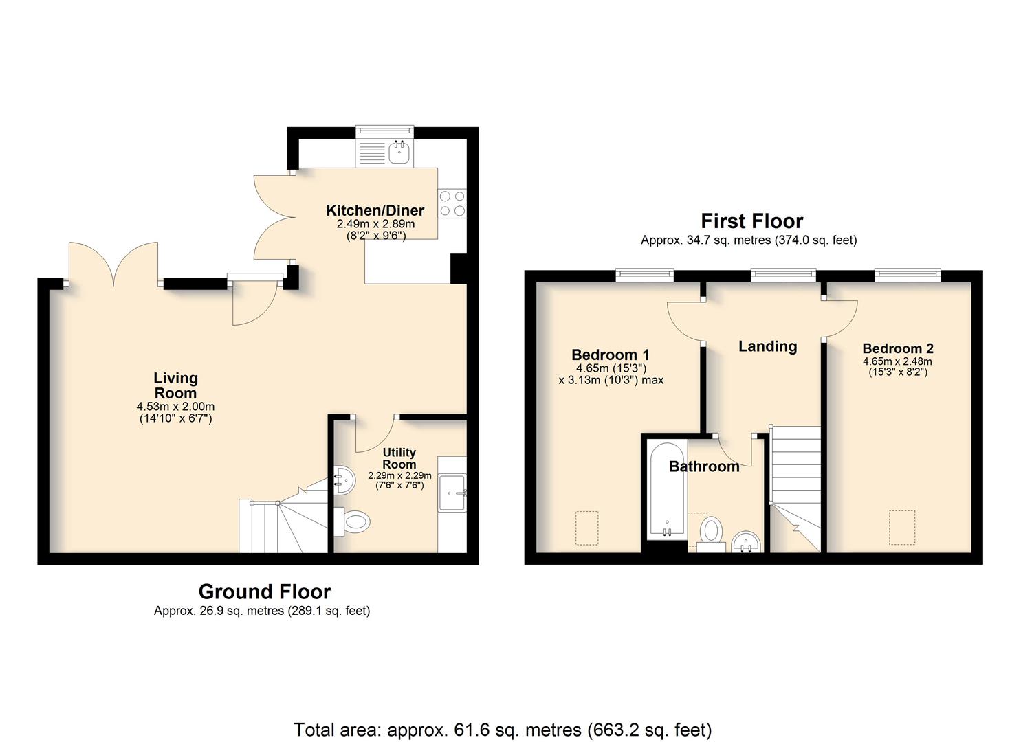 On the first floor there are two well-proportioned double bedrooms, both presented in a neutral style. These are served by a contemporary bathroom fitted with modern sanitary ware and finished to complement the overall design of the house.