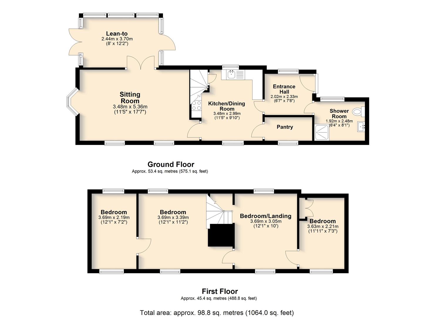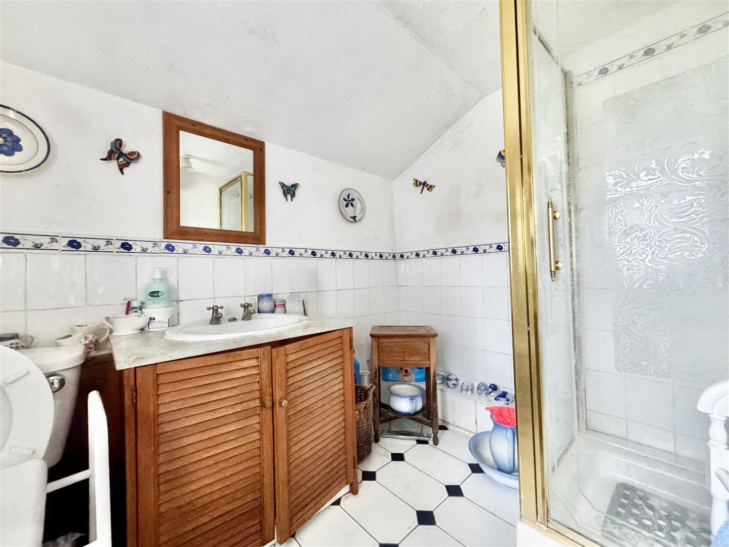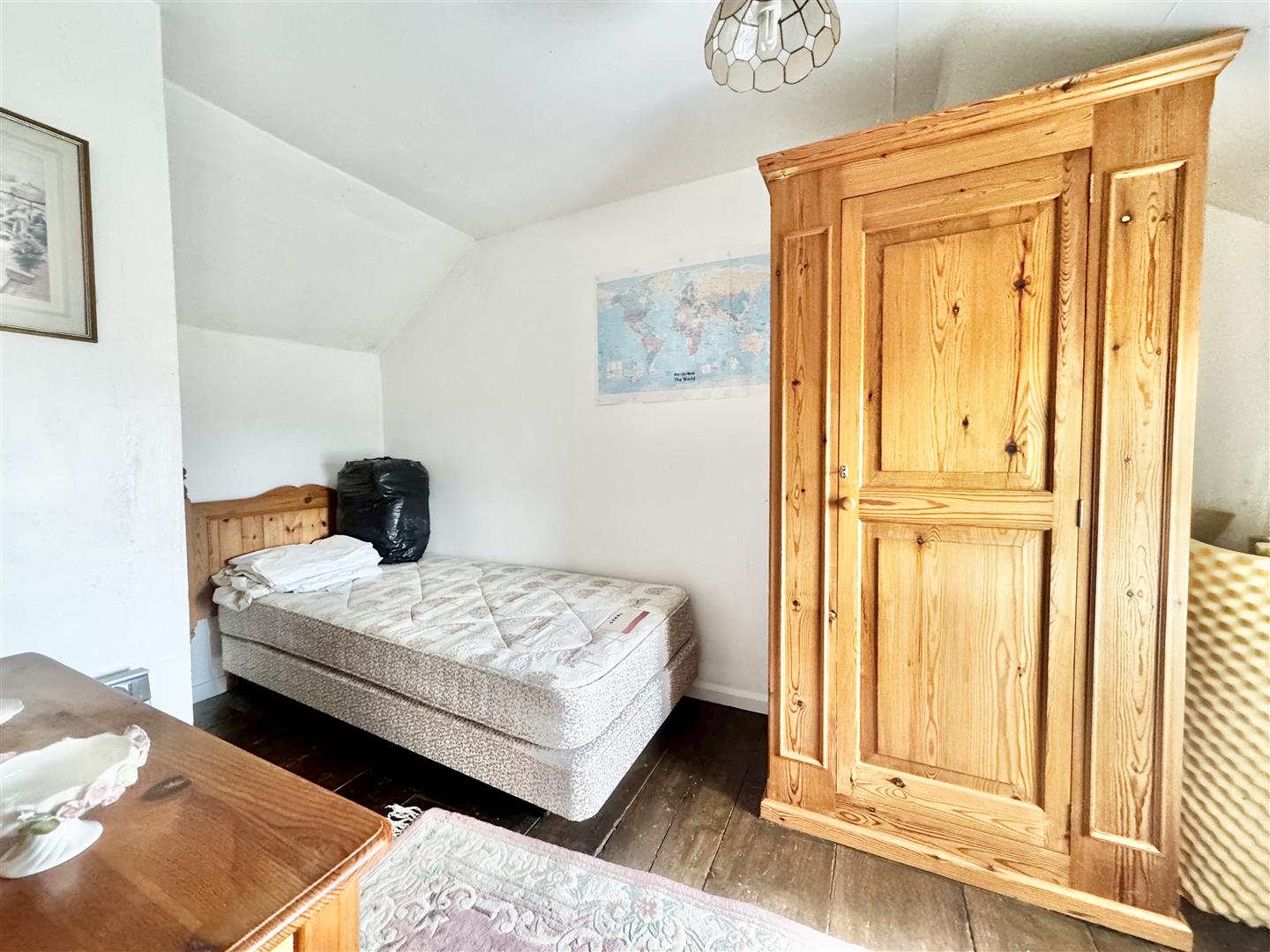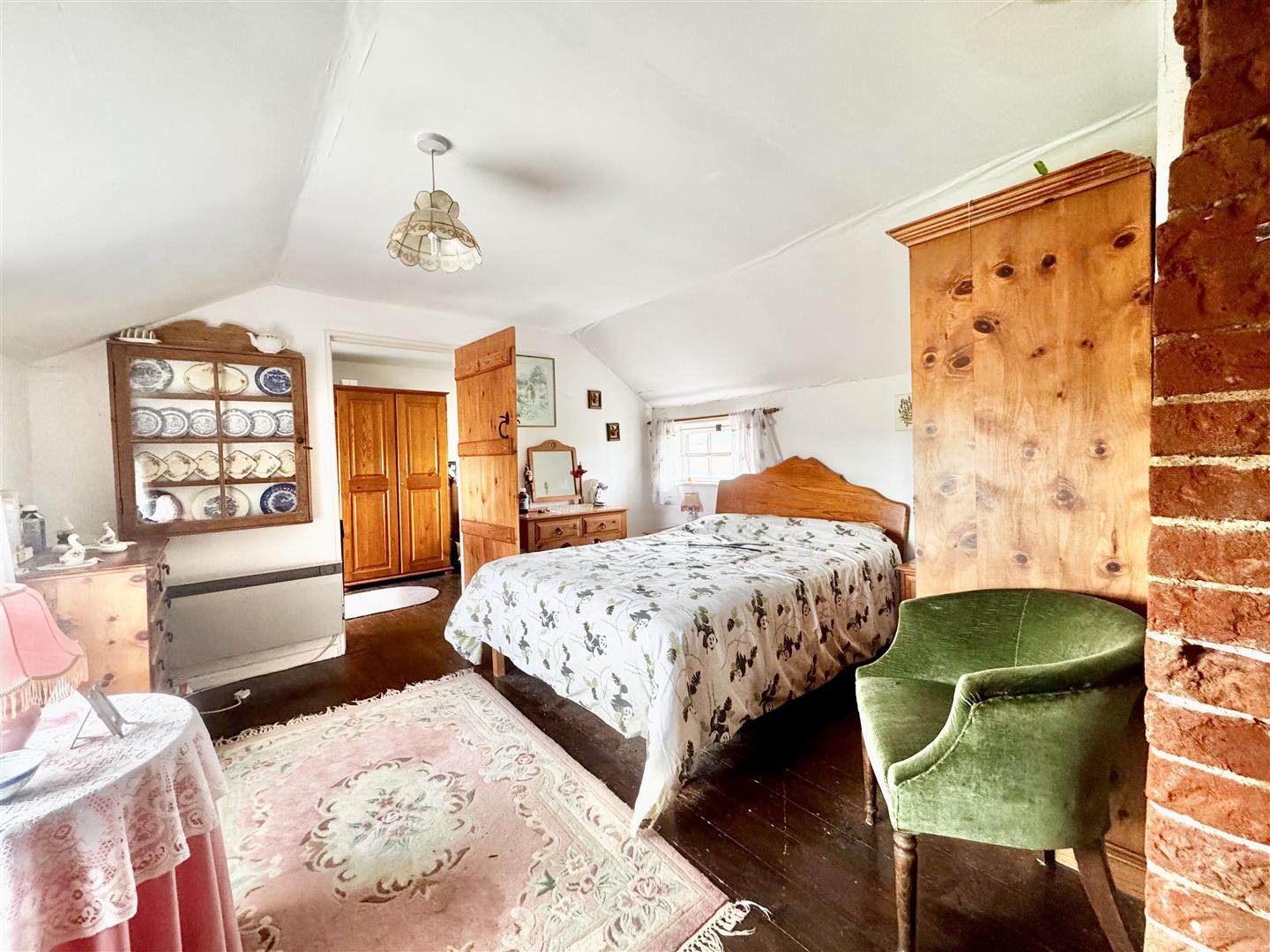 A front door from the parking area opens into an entrance hall which immediately highlights both the period character and surprisingly generous proportions of the cottage. Traditional latch and brace doors lead to the principal ground floor rooms. The shower room forms part of a later addition and is fitted with a shower enclosure, WC and wash basin set within a vanity unit. Whilst perfectly serviceable, the property would now benefit from a programme of general updating and improvement throughout. The kitchen dining room sits at the centre of the house and is a naturally light space with windows to both front and rear elevations enjoying rural views. Exposed timbers remain in place, and the kitchen is arranged around the walls with the oven and hob positioned within the former fireplace recess. There is space for a dining table, and a walk-in pantry provides useful additional storage. The room offers clear scope for modernisation to suit a purchaser’s own taste and requirements. From the kitchen, stairs rise to the first floor, and a doorway leads through to the sitting room. This is a notably spacious reception room with windows to two elevations allowing for excellent natural light and views over the surrounding countryside. Ceiling timbers remain exposed, and an open fireplace provides a focal point. French doors open into the lean-to garden room, which overlooks the rear garden and offers further potential for improvement. On the first floor, the stairs lead into a substantial landing area currently used by the present owners as a guest bedroom and study space. Windows to both front and rear elevations provide elevated views. Bedroom three is a generous single room incorporating the airing cupboard, whilst the principal bedroom is a well-proportioned double enjoying a dual aspect. From here, access is gained to bedroom four, another single room. The first floor layout is somewhat unconventional but offers flexibility and clear opportunity for reconfiguration, subject to any necessary consents. Overall, White Post Cottage presents an attractive period home requiring updating, offering buyers the opportunity to enhance and adapt the accommodation to modern expectations.