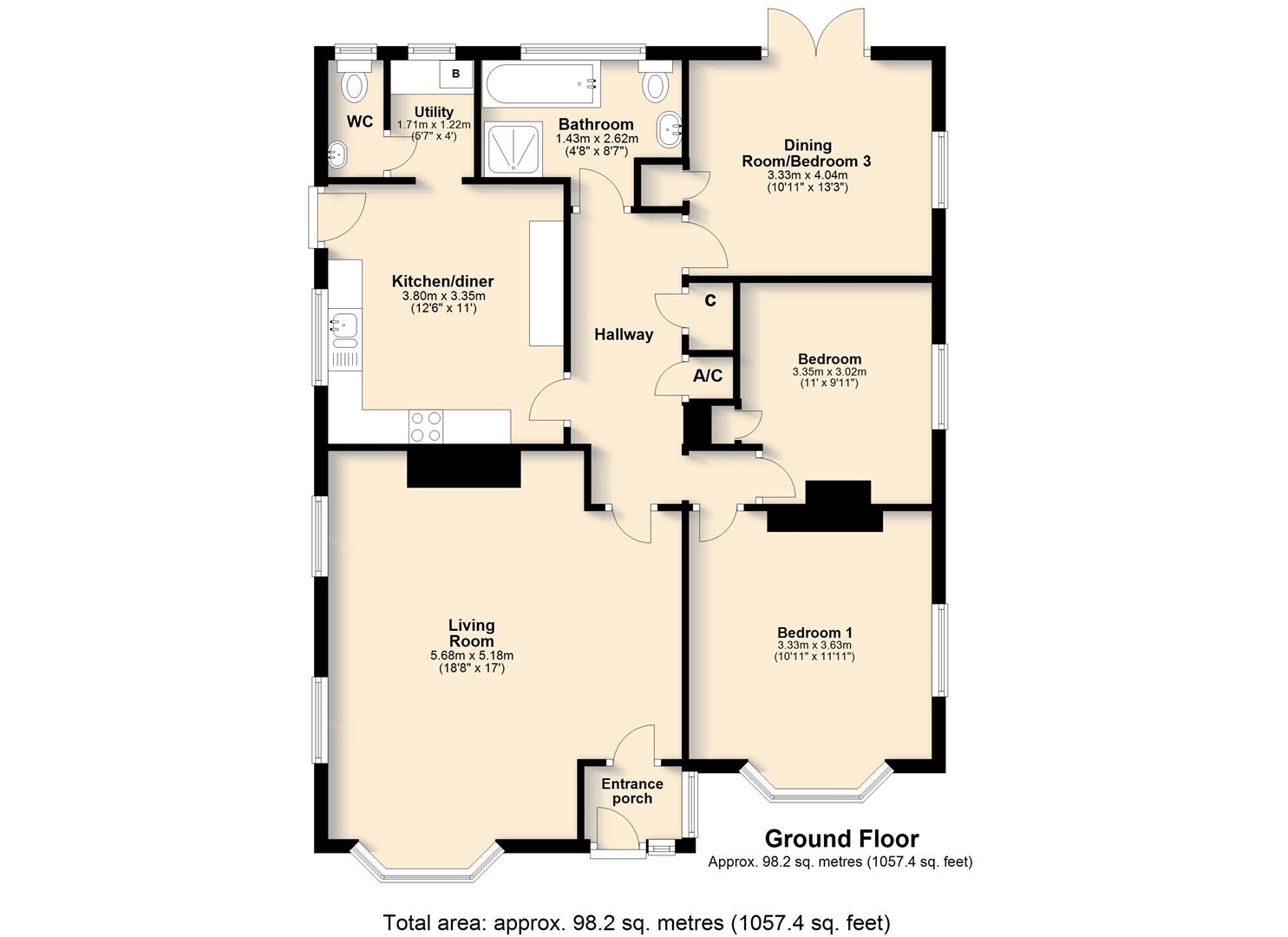 Built around the 1930s, this attractive bay fronted bungalow is set in a popular and handy area for access the shops and town centre. The property has a bright and inviting living room, which is dual aspect and a lovely place to sit and relax with family or guests. A hallway with airing and storage cupboard, has doors which leads to all other rooms, including a spacious kitchen/diner with supporting utility and WC. There are three bedrooms, the bedroom at the back of the bungalow has patio doors opening onto the garden and is currently used as a dining room.