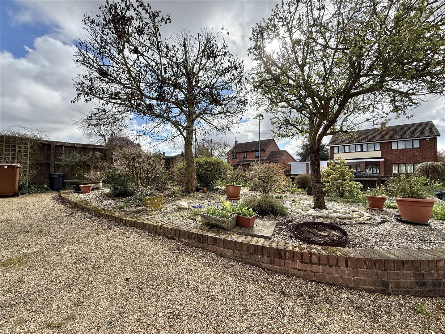 Large low maintenance shingle frontage stocked with an array of shrubs. Driveway in front of the bungalow caters space for several vehicles, this leads down the right side of the bungalow to a sheltered carport. A wooden gate opens to path which leads into the rear garden; laid mainly to lawn with two useful storage sheds.