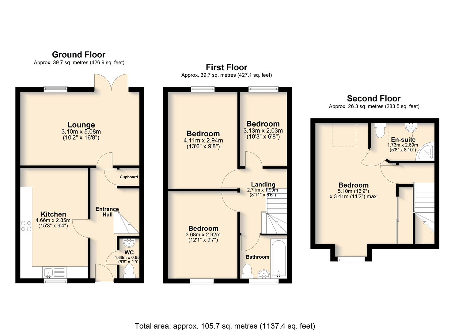 Step inside this stylish four -bedroom, three-storey semi-detached home and experience a space designed for modern family living. The ground floor welcomes you with a bright and airy entrance hall, complete with a W.C., before leading into a spacious kitchen/diner—perfect for cooking, entertaining, or enjoying family meals together. The lounge flows effortlessly onto the private rear garden, providing a seamless connection between indoor and outdoor living, ideal for summer barbecues or relaxing afternoons. Upstairs, three well-proportioned bedrooms offer plenty of space for family, guests, or a home office, complemented by a thoughtfully designed family bathroom. The entire second floor is dedicated to the principal bedroom, a true retreat featuring built-in wardrobes and a en-suite, giving you your very own private sanctuary to unwind and recharge. This home combines style, comfort, and practicality, making it an ideal choice for families looking for a versatile and welcoming space to call their own.